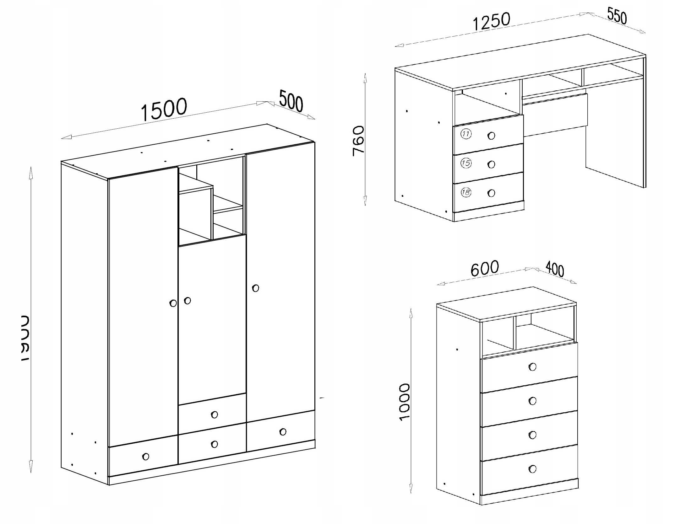 Набір молодіжних меблів піксель гардероб скриня з ящиками