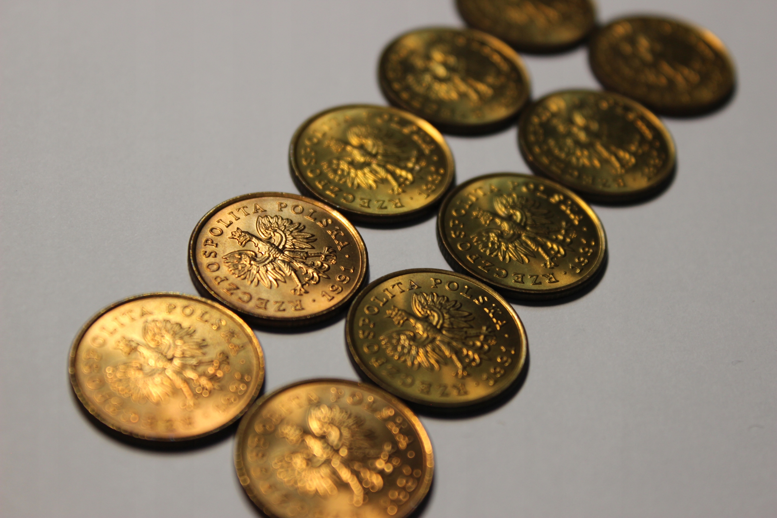 Набір монет 10 штук 5 Groszy 1991 Монетний двір прямо з рулону