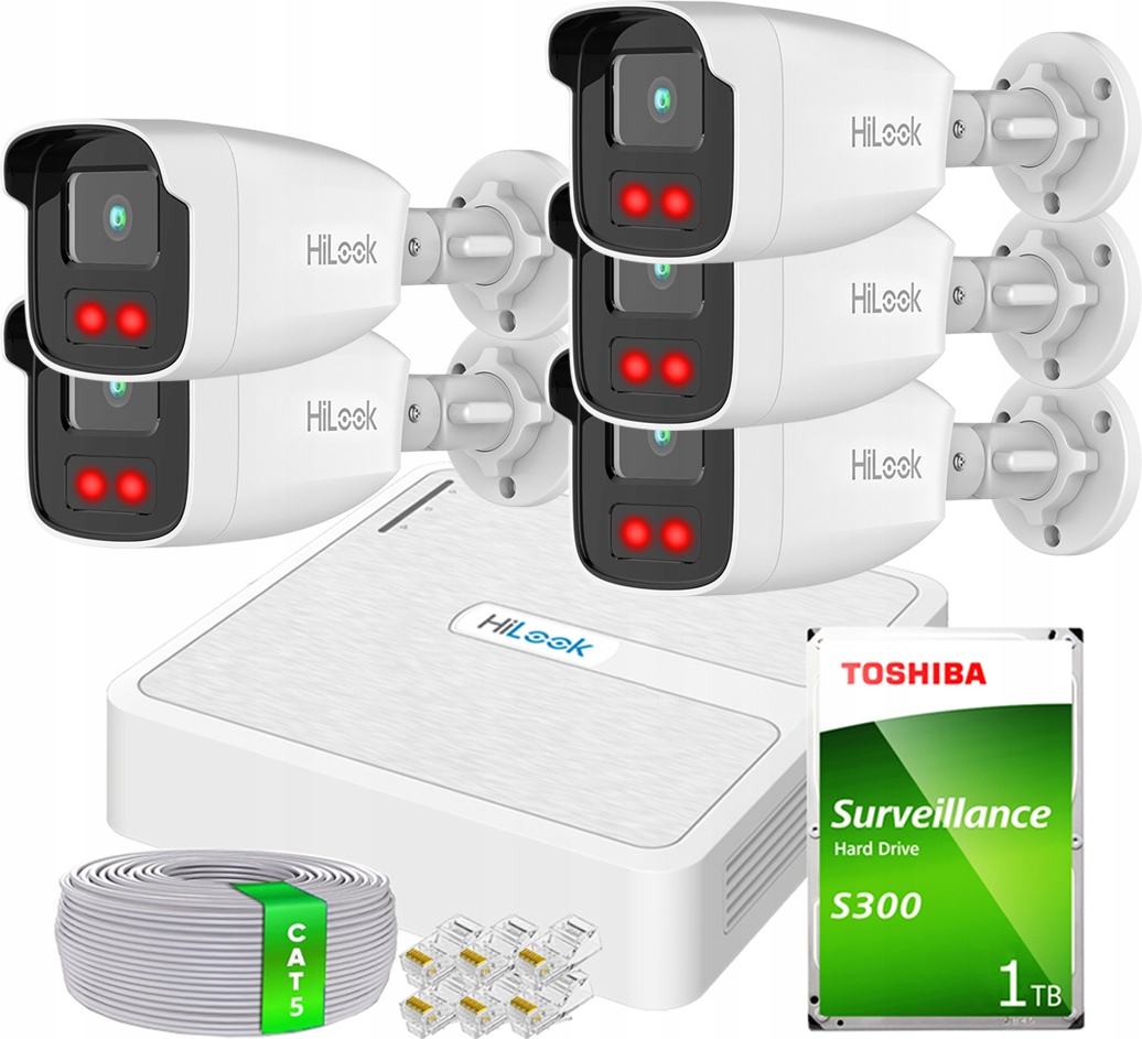 комплект моніторингу IP з 5 FullHD IR 50 метрів - HiLook від Hikvision