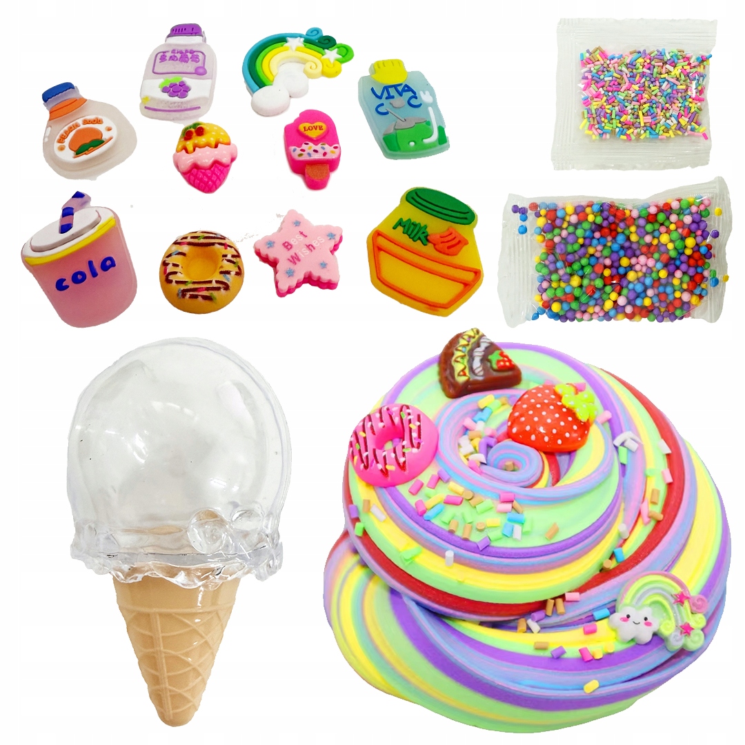 🍭 НАБІР ПУХНАСТИХ СЛАЙМІВ З НАМИСТИНАМИ ТА ФОРМОВКОЮ ДЛЯ ЦУКЕРОК - КОЛЬОРОВА РОЗВАГА ДЛЯ ДІТЕЙ!
