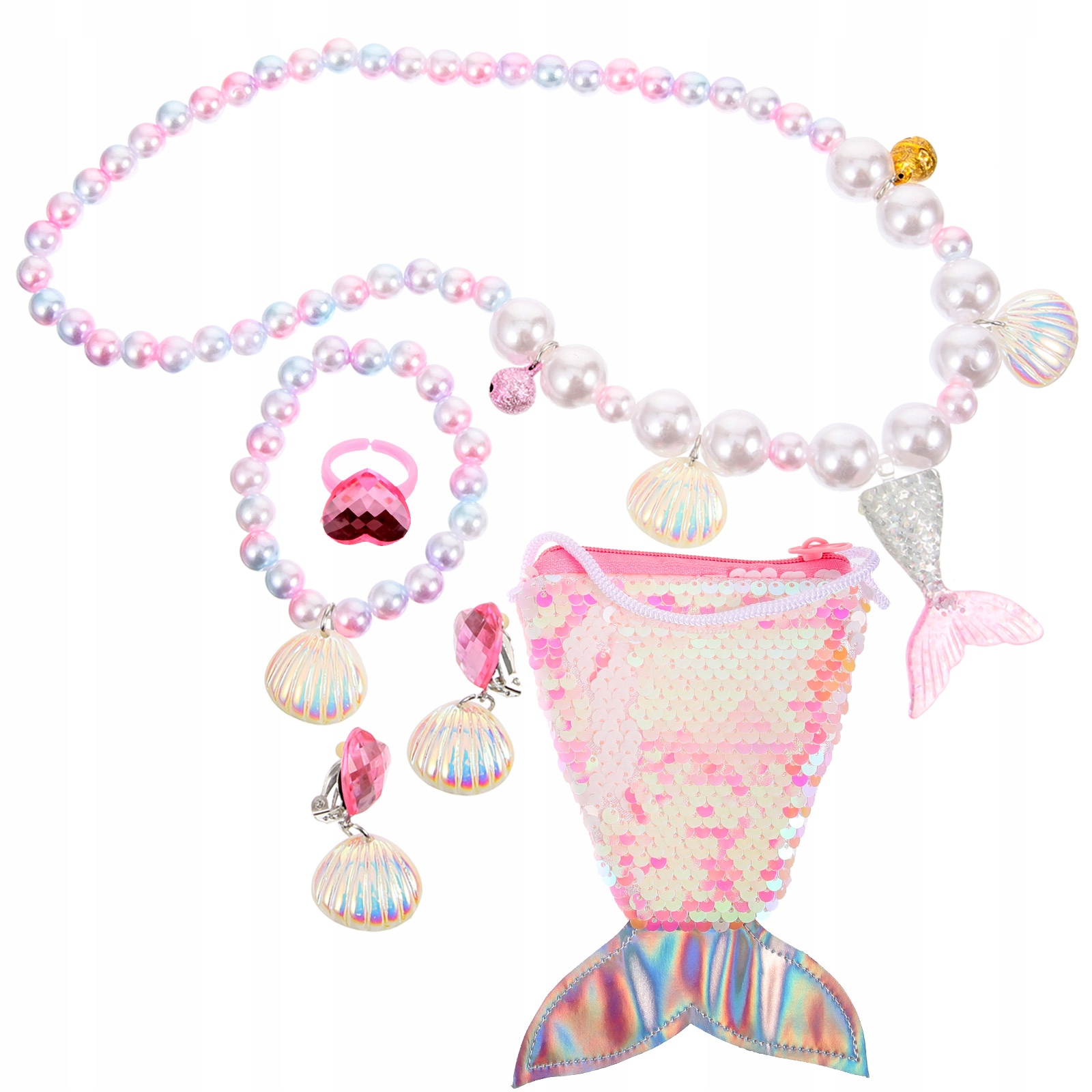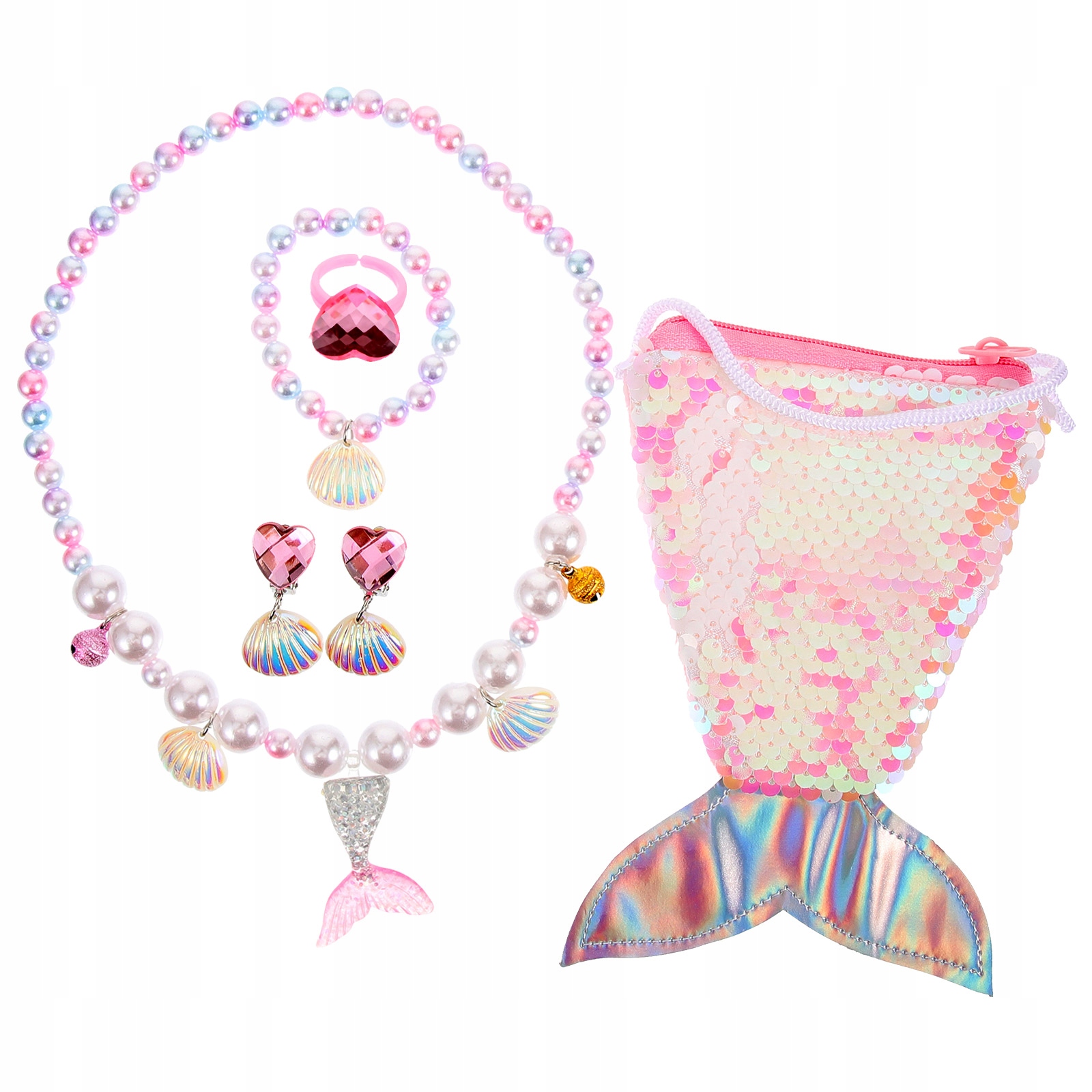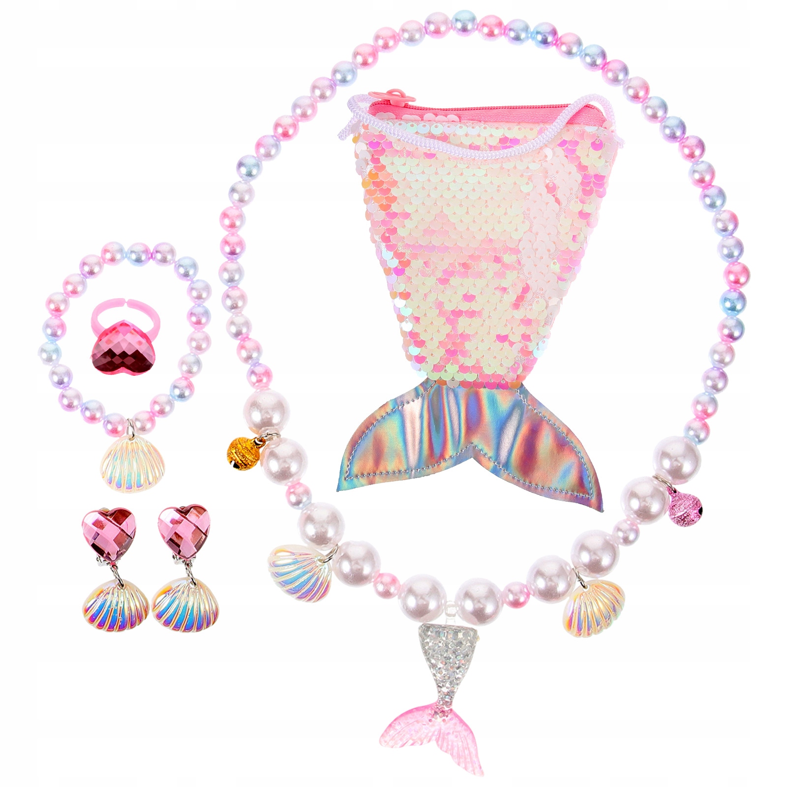 ✅1 х сумка з хвостом русалки 1 х намисто 1 х браслет 1 х пара сережок 1 х прикраса каблучки
