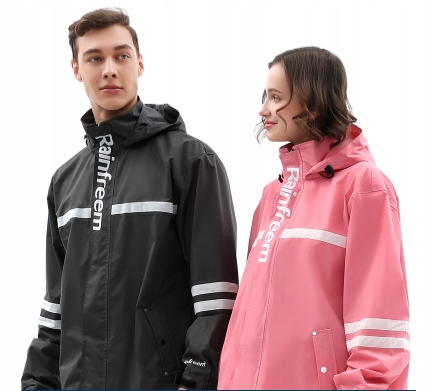 Двоєральний дощовий костюм з великою кількістю світловідбиваючих панелей.