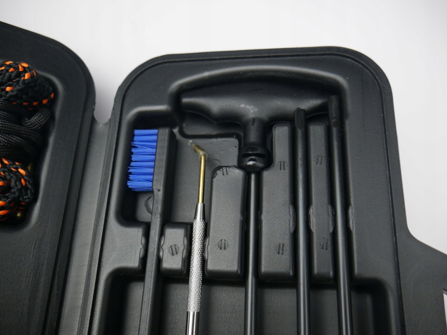 Повний набір для чищення Myłkus, розроблений для користувачів AR-15 та інших гвинтівок калібру 5,56 / 223. Міцний, міцний, посилений стрижень для чищення, латунні щітки із загартованим сердечником, шнур для чищення бочки та практичні аксесуари – усе це упаковано у міцну, струнку валізу. Ідеально підходить для догляду після стрільби та для планового обслуговування зброї.