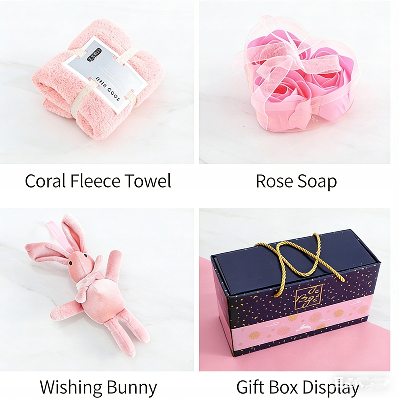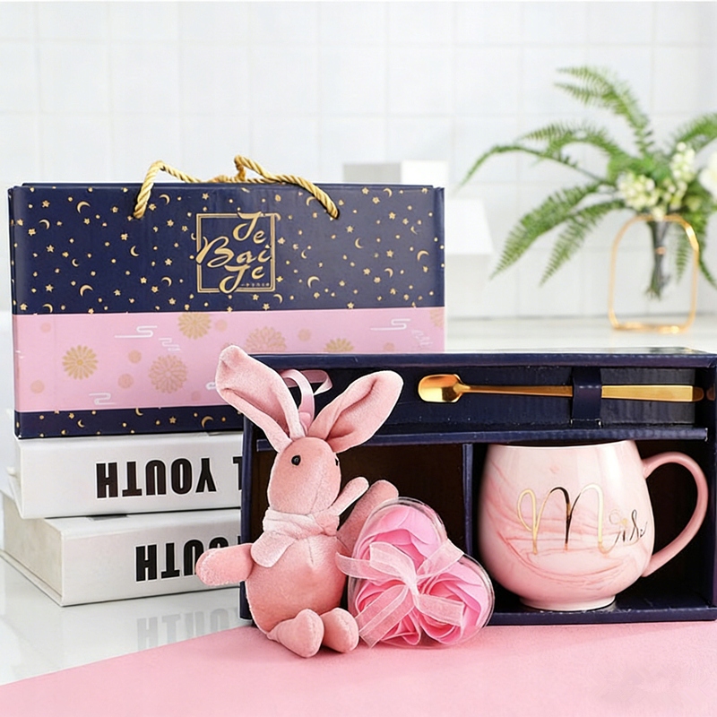 3.Подарункова коробка, кухоль, ложка, кролик із бажаннями, рожеве мило (рожевий)