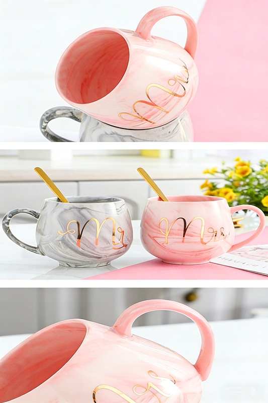 5.Кухоль з мармуровим візерунком - пара в стилі Mr & Ms