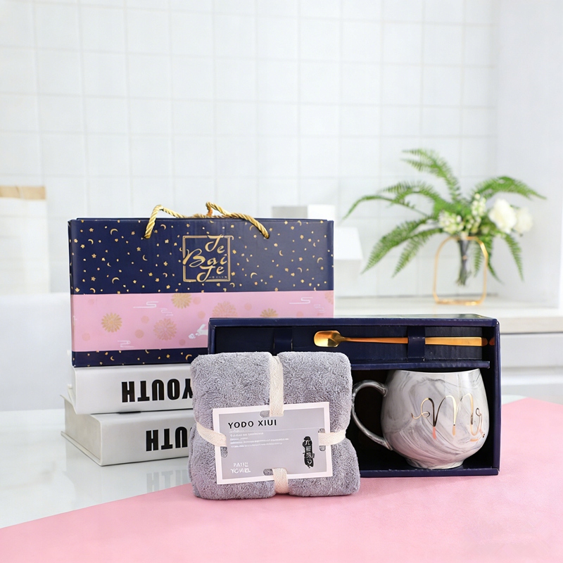 1.Подарункова коробка, кухоль, ложка, кораловий рушник (рожевий)