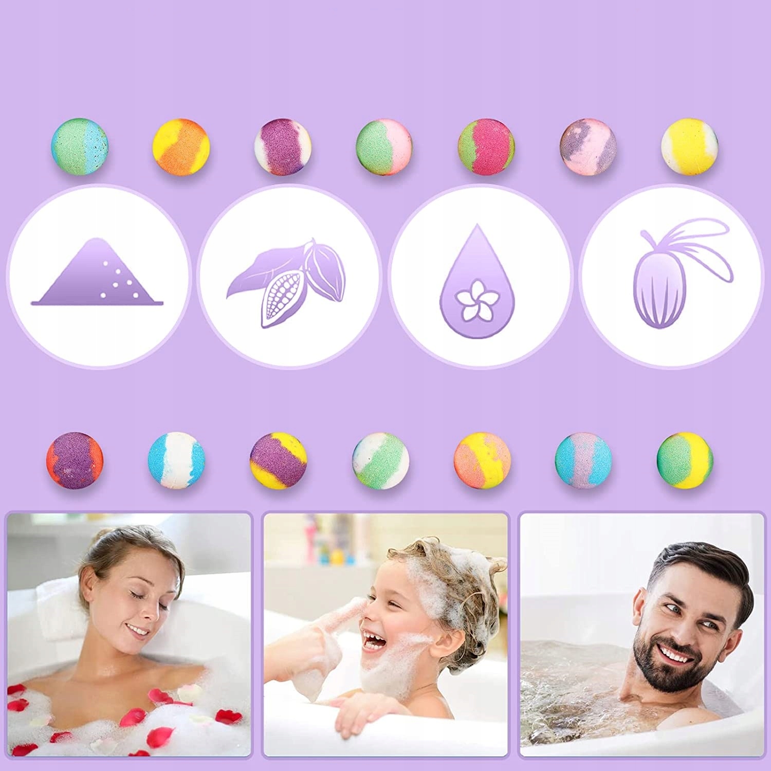 - Набір для пінної ванни містить 14 різних кольорів та ароматів, зокрема