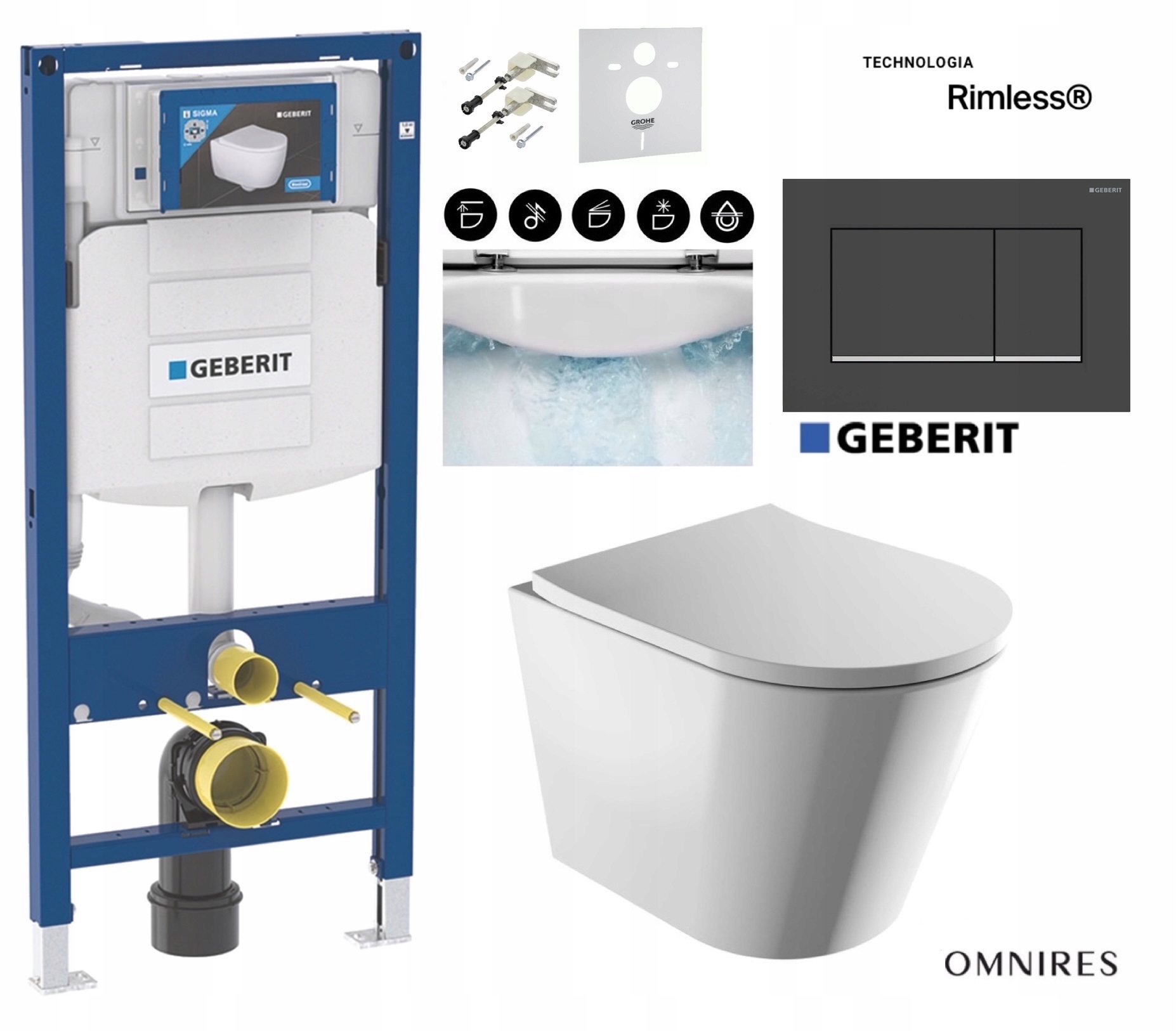 НАБІР НА УНІТАЗ 7в1, УНІТАЗ OMNIRES RIM SILENT SIGMA BUTTON