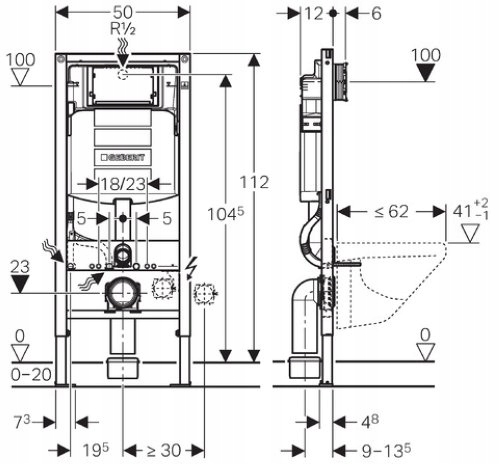Рамка прихованого монтажу Geberit Duofix для підвісних унітазів, 112 см, зі зливним бачком Sigma 12 см