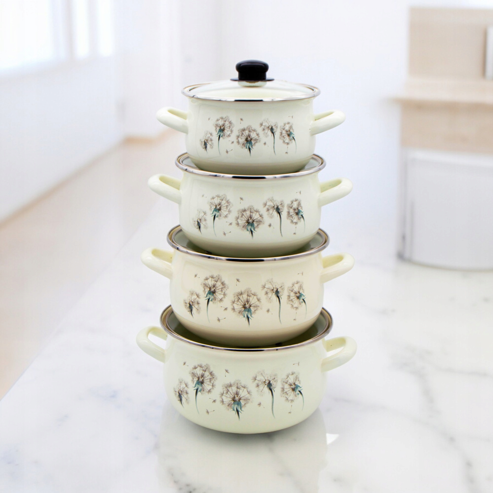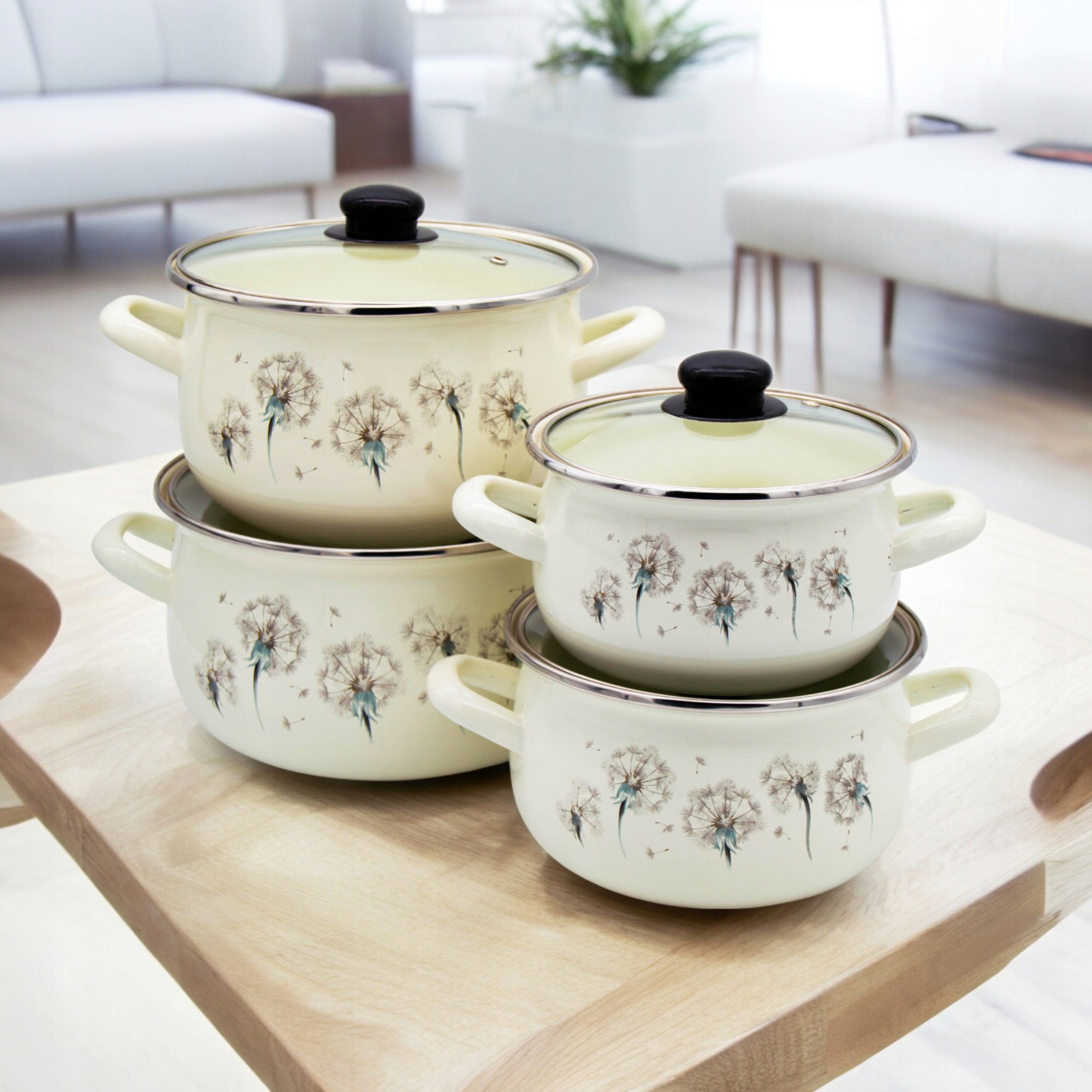 Набір емальованих каструль, 4 шт + кришка, традиційні ЕМАЛЬОВАНІ каструлі