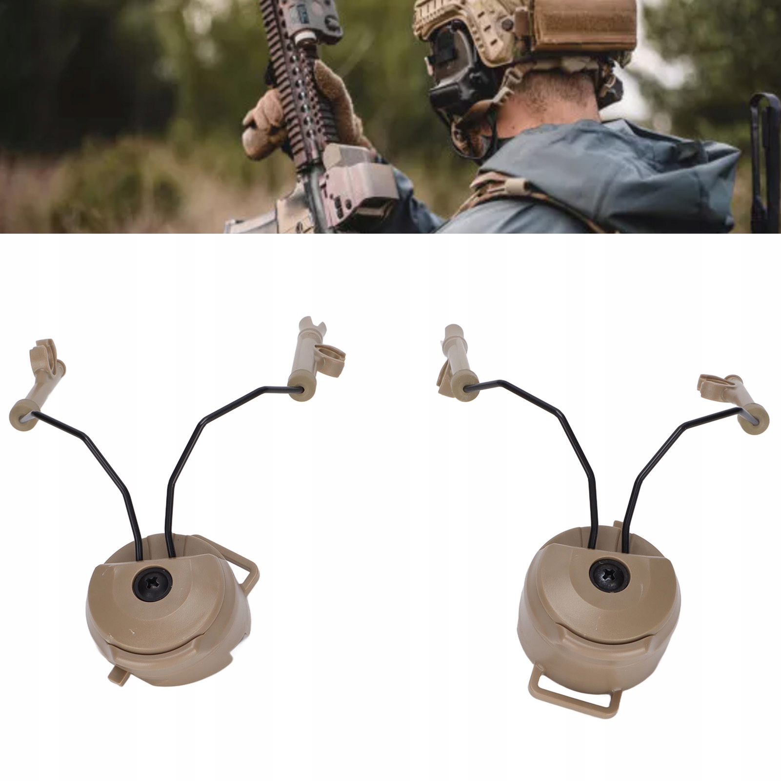 1. Навушники: Власник голови дуже підходить для шоломів і може міцно утримувати навушники. Використовуйте Talkie: EARCHERS можна відокремити від пов'язки на голову і вільно обертатися, а затискач кронштейна може бути прикріплений до канавки шолома. Зовні: Відмінний зовнішній аксесуар для набору навушників та шолома під час відкритих класів, він може замінити зламані або старі дужки. Застосування шолома: підходить для швидкого, для ACH, Mich Helmets, якщо ви можете покласти шолом з обох боків дуги бічної залізниці. Застосування навушників: для COMTAC та II для навушників MSA для Sordin, пара навушників, проста установка та готовність до використання.
