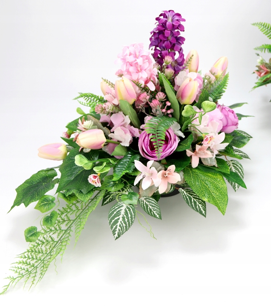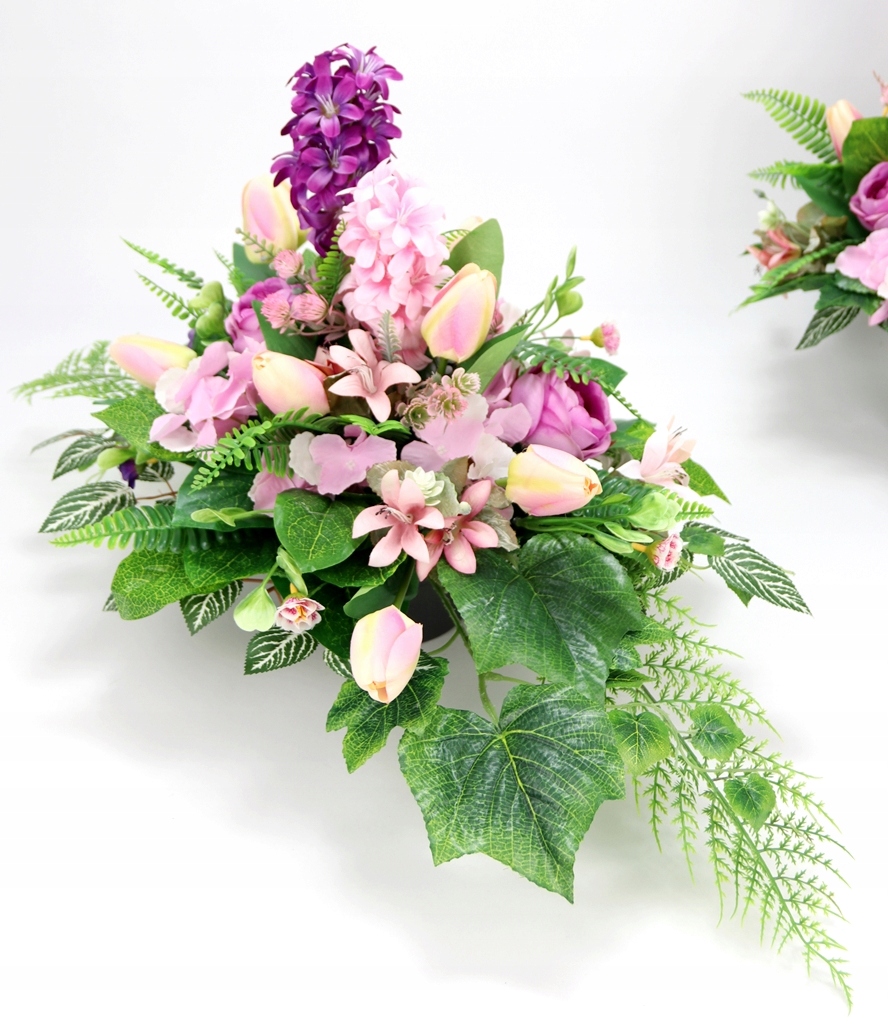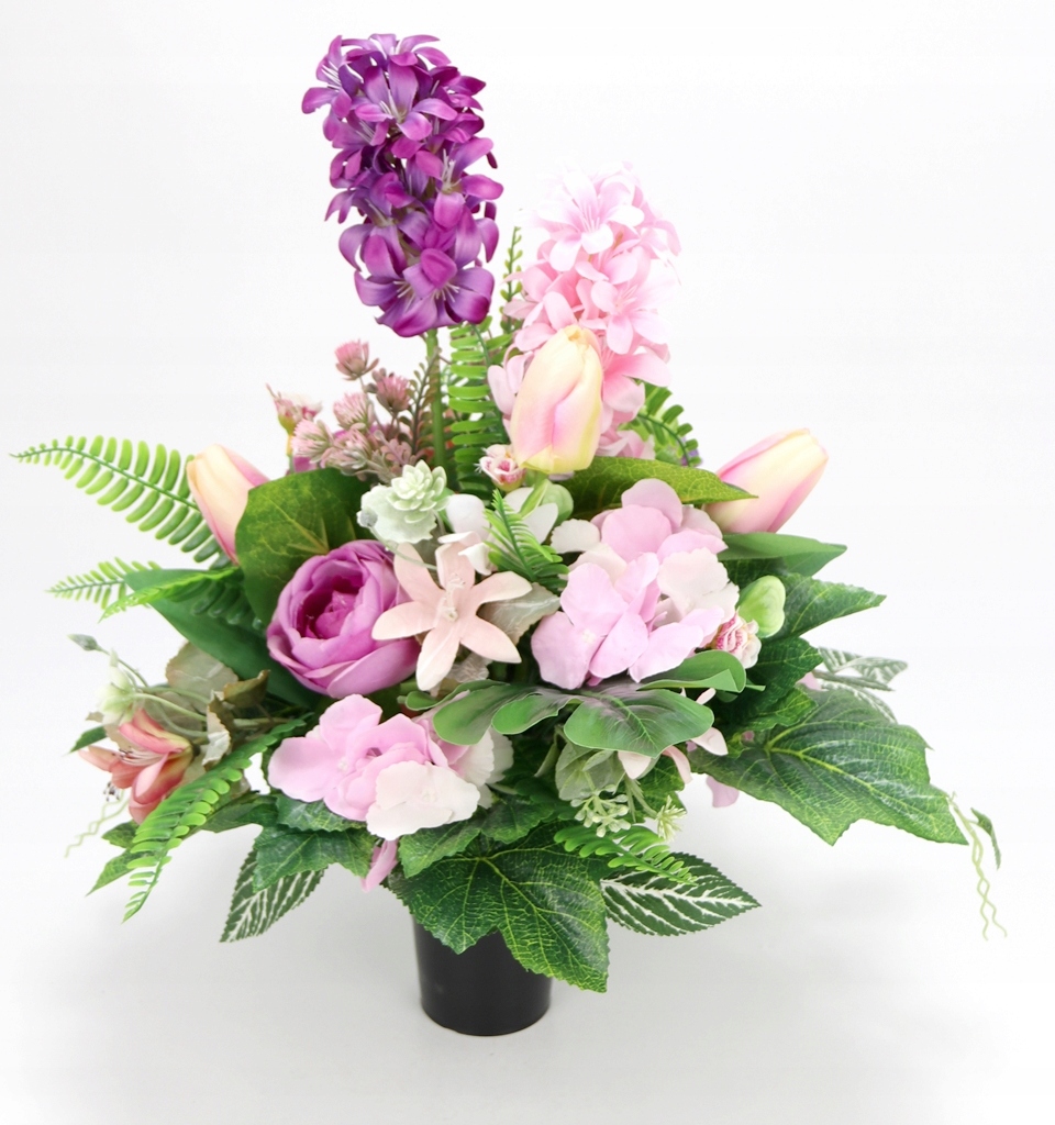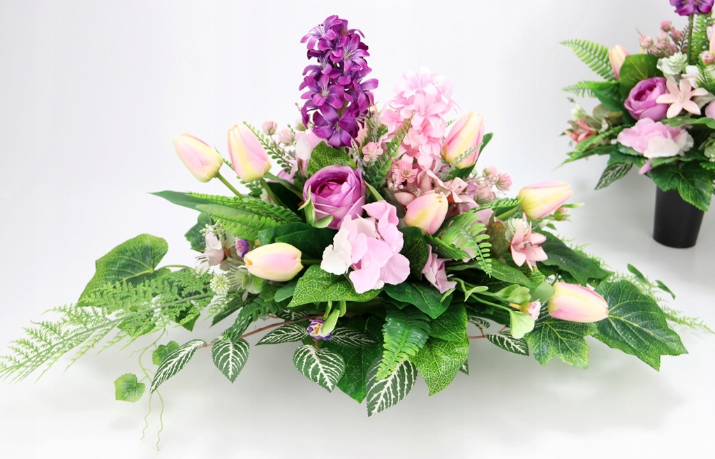 Набір надгробків ВЕСНА Букет + букет ГІАЦИНТИ ТЮЛЬПАНИ рожево-фіолетовий