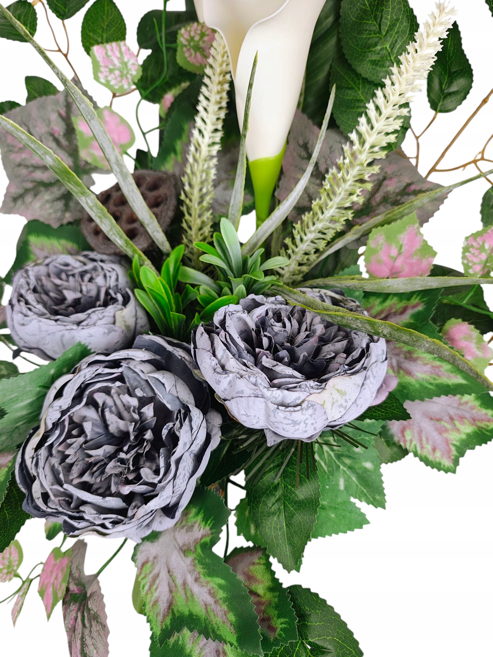 Декорація створена для гідного та красивого вшанування близьких. Пишна композиція чудово заповнює простір на надгробку, створюючи виразний, але водночас тонкий декор. Вставка вази створена таким чином, щоб її можна було стабільно розмістити в класичних надгробних вазах, завдяки чому все виглядає цілісним і елегантним.