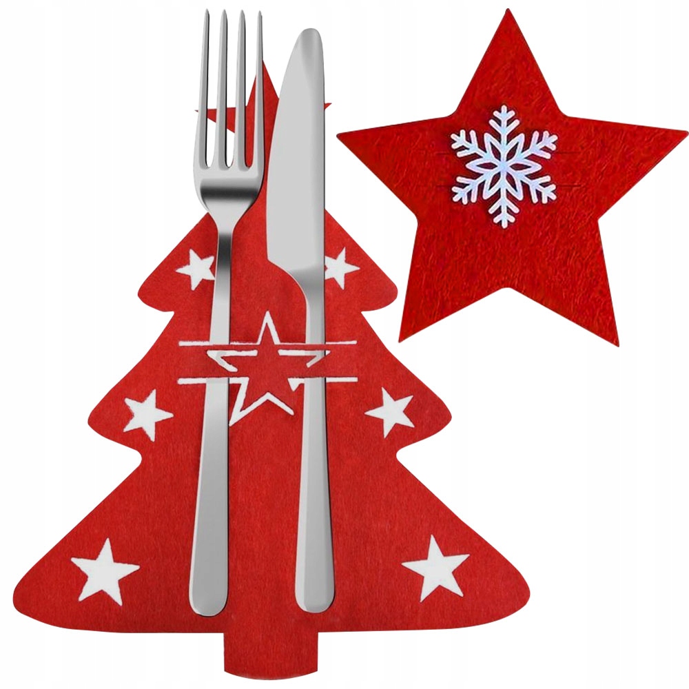 Новорічний набір столових приборів у формі ялинки та зірки - ідеальний елемент прикраси столу під час різдвяних свят. Чохол виготовлений з приємного на дотик м'якого матеріалу. Він стане ідеальним доповненням до вашого новорічного декору. Безліч композицій, які можна оформити за допомогою цих чохлів, дозволять створити чудову, незабутню атмосферу за сімейним столом.