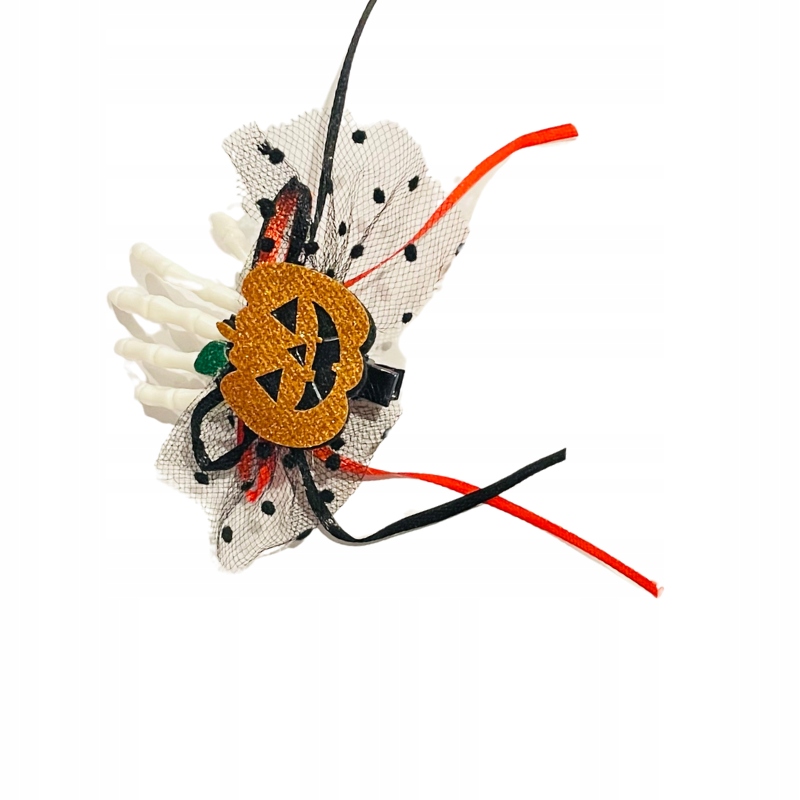 Шпилька прикрашена кістками рук і блискучим гарбузом, котом або павуком