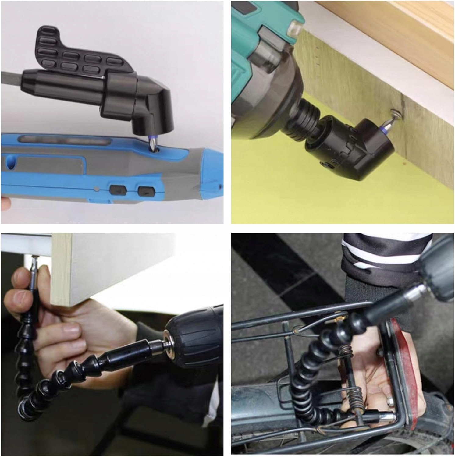 3 насадки під кутом 90 градусів, 1 гнучкий подовжувач свердла, 10 комплектів насадок для викруток. Його можна використовувати у важкодоступних місцях і підходить для більшості типів тріскачок, головок, тріскачок і динамометричних ключів.