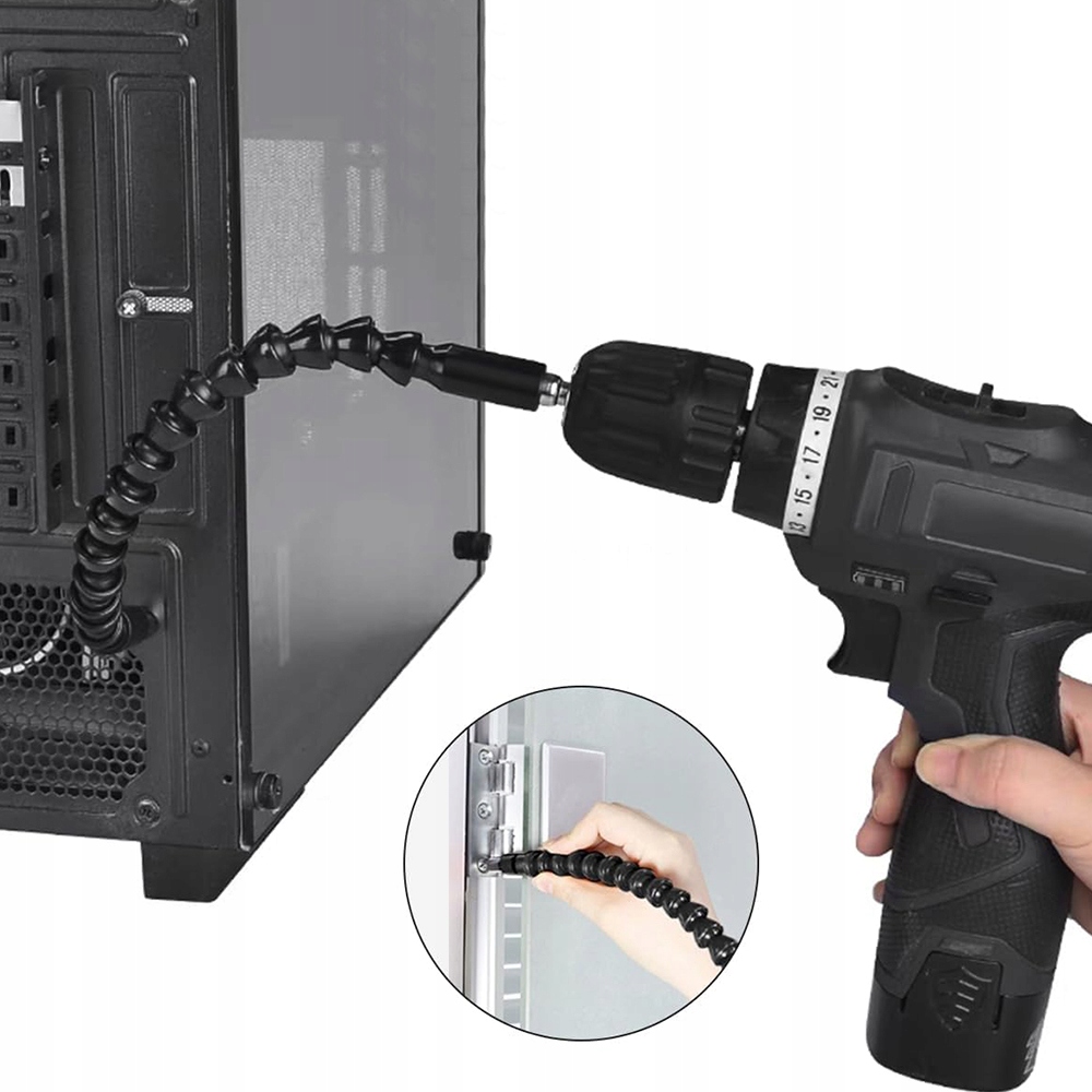 міцна вбудована магнітна основа вміщує стандартні шестигранні свердла та свердла, запобігаючи їх випаданню. Ідеально підходить для всіх типів робіт, напр. у важкодоступних місцях звичайною дрилем. Кутовий подовжувач також добре виготовлений і дуже міцний.