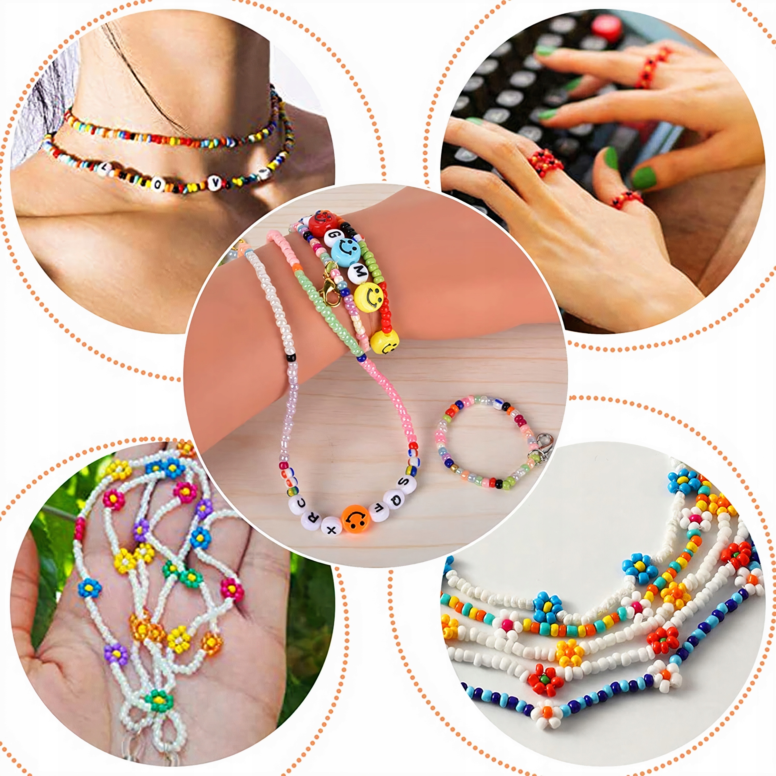 Ви можете легко зробити браслет або намисто ручної роботи, нанизавши намистини на гумку або шнурок - зав'яжіть і готово :) Також можна використовувати застібки включені в набір. Завдяки намистинам, що входять до набору, ви можете зробити свій власний брелок, сережки чи каблучки.