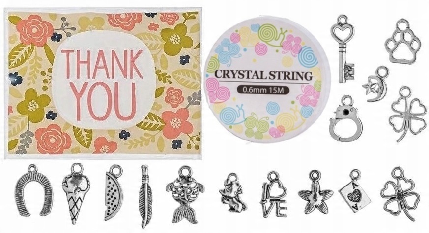 МІКС МЕТАЛЕВИХ ШАРМС 15 ШТ + 15 МЕТАЛЕВИХ ЛАНОК + ГУМКА НА РУЛОНІ 10 МЕТР.