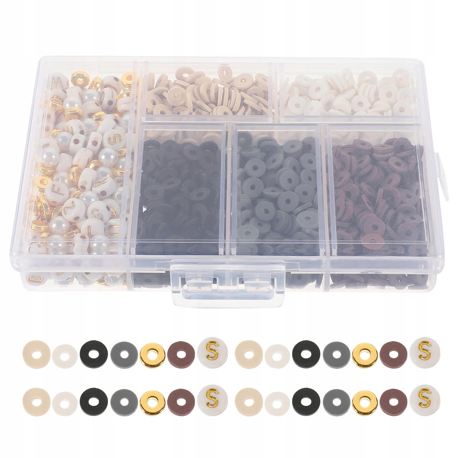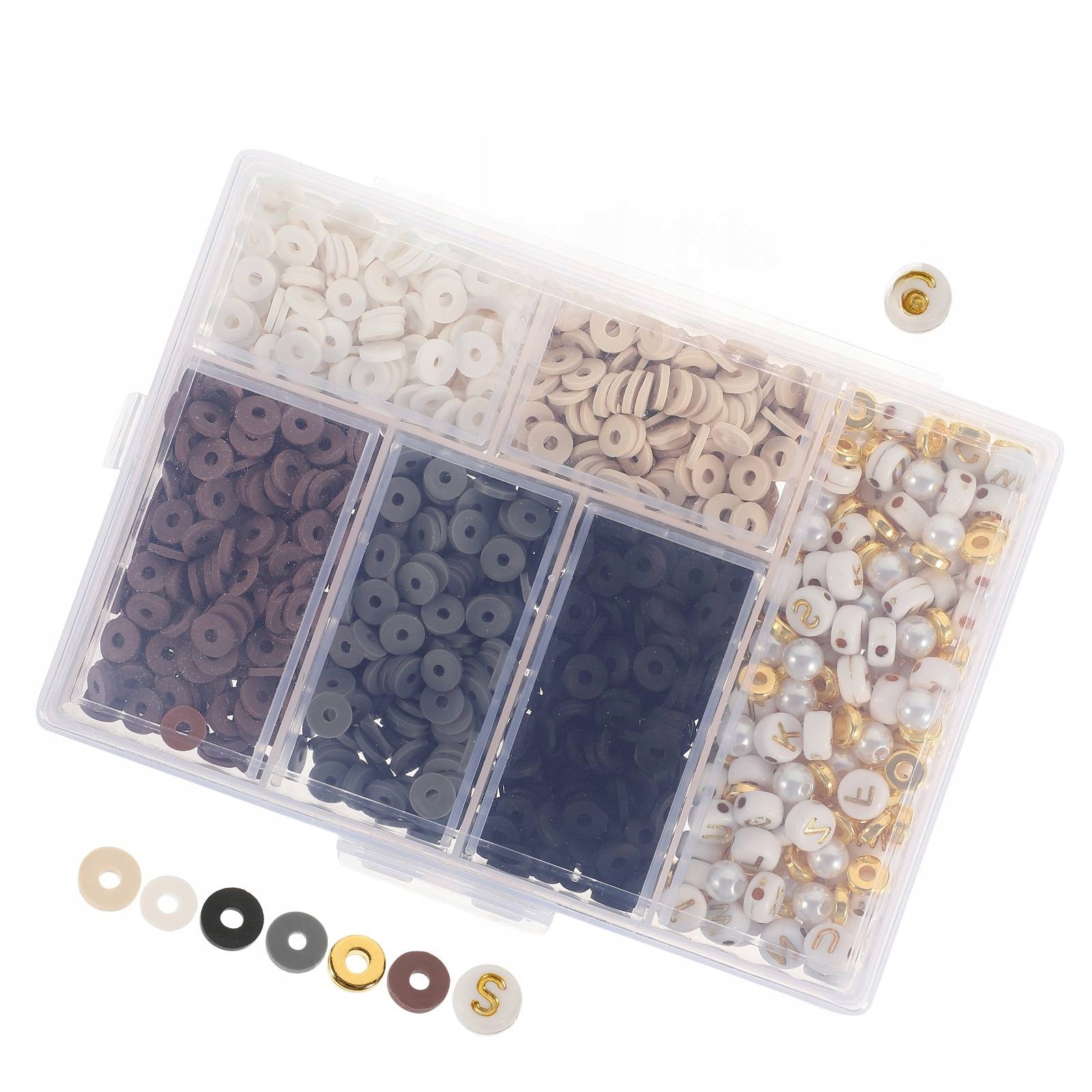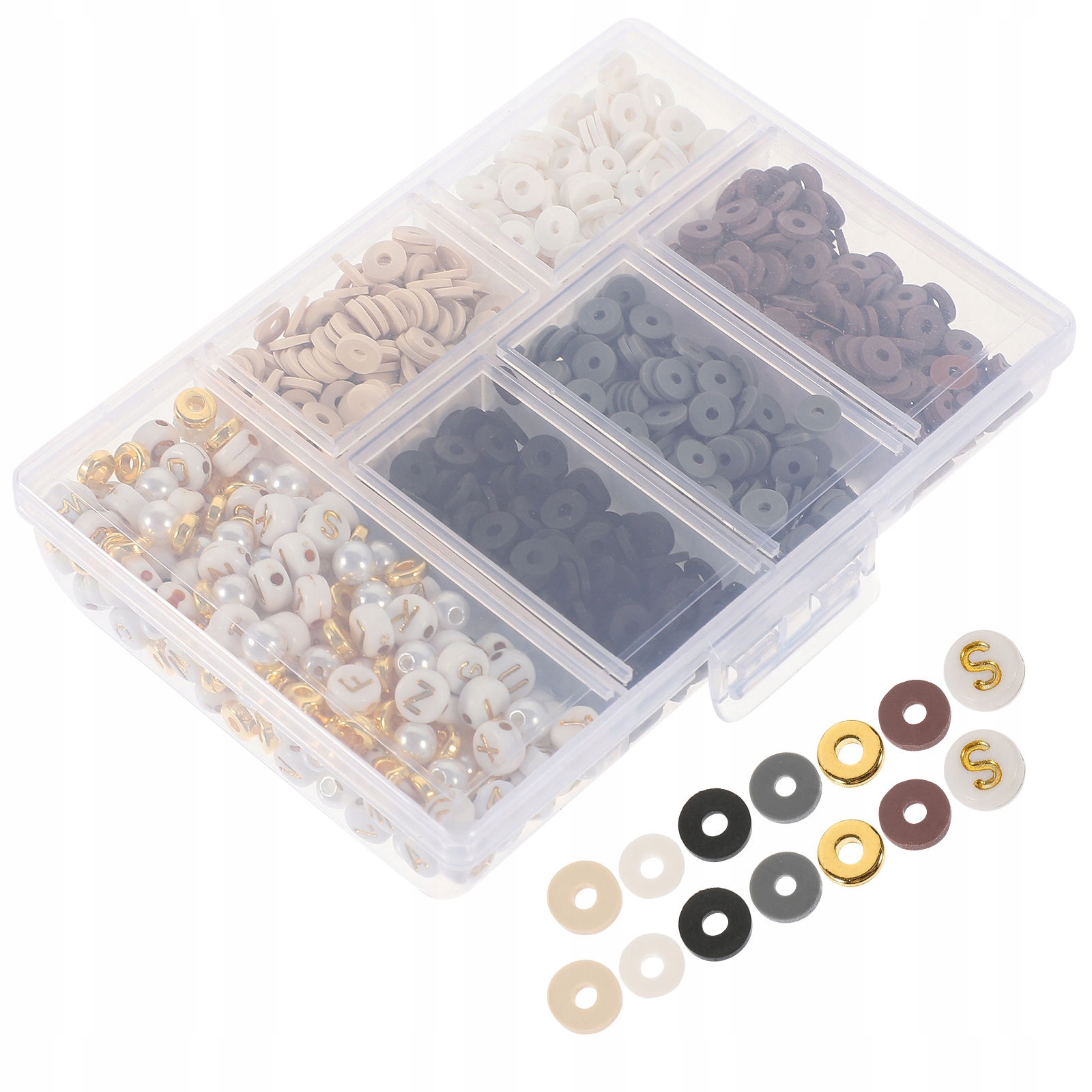 ✅Коробка містить шматочки полімерної глини, намистини для літер, металеві відділення та перлини