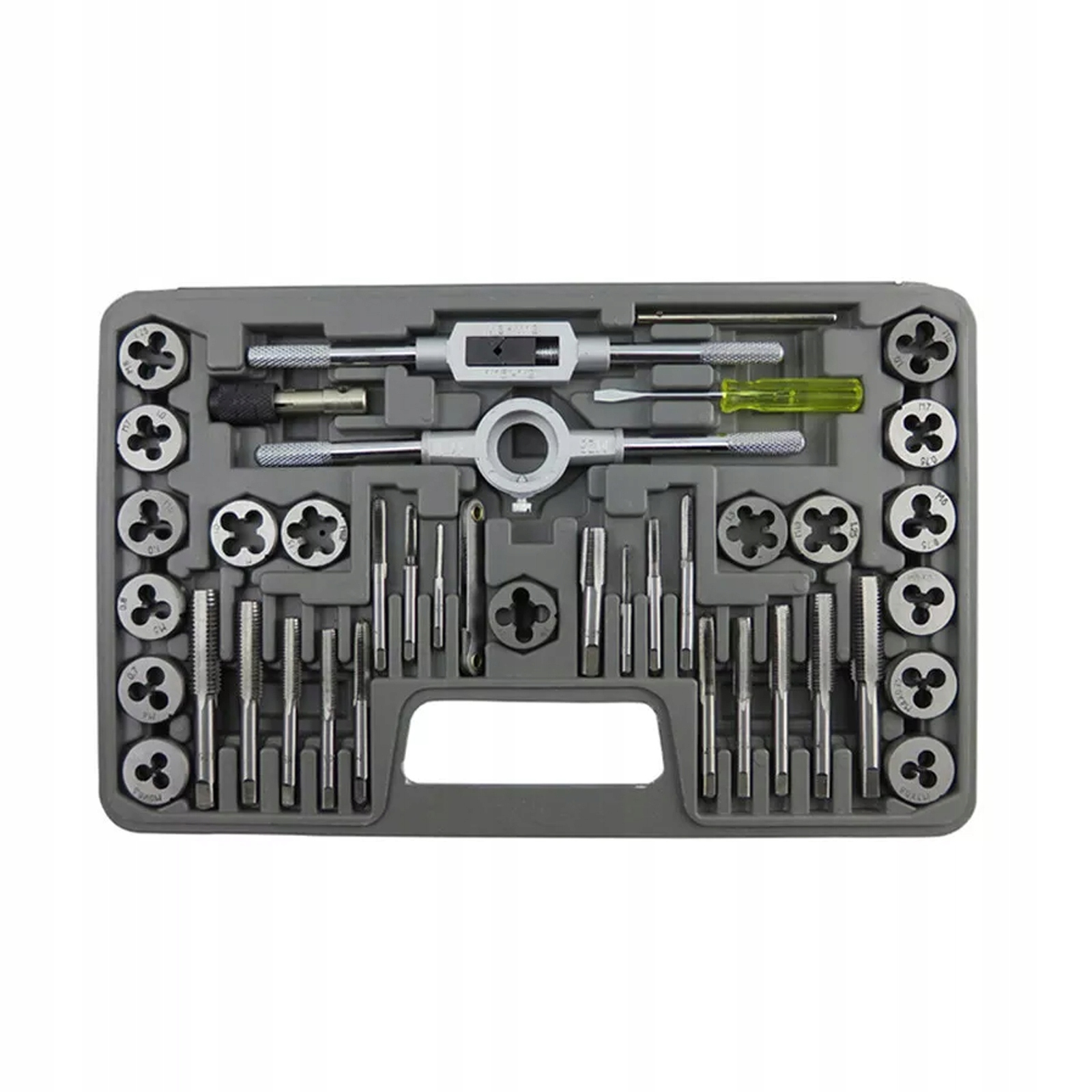 ✨✨✨40-частина професійний набір потоків та Sae Nors. Нитки та ніші - це ріжучі інструменти, що використовуються для обробки ниток. Нитка вирізає нитки на внутрішній поверхні отвору, створюючи жіночу різьбову поверхню, яка працює як гайка. Військово -морський флот вирізає нитки на попередньо сформованому циліндричному стрижні, створюючи частину із зовнішньою ниткою, яка діє як гвинт. Обидва інструменти можна використовувати для очищення ниток, які називаються різьбою.