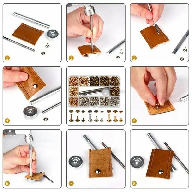 Набір із 480 елементів із довшими та міцнішими заклепками призначений для шкіри та товстіших матеріалів, які потребують міцного кріплення.