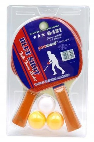 Набір настільного тенісу (дві ракети та 3 м'ячі). Ракета оснащена прямим ручкою, з подібною шириною по всій довжині ручки. Цю версію зазвичай віддають перевагу людям, які мають звичку перетворювати ракетку під час гри. Натуральний матеріал - деревина використовувалася в ручці та дошці. Дошка покрита з обох боків, яка завойована піною. Це поєднання матеріалів дозволяє отримати оптимальні параметри для людей, які починають свої пригоди з настільного тенісу. Ракета призначена для початківців. Набір також включає 3 кульки з класичного пластику, що використовується для виготовлення цього типу кульок.