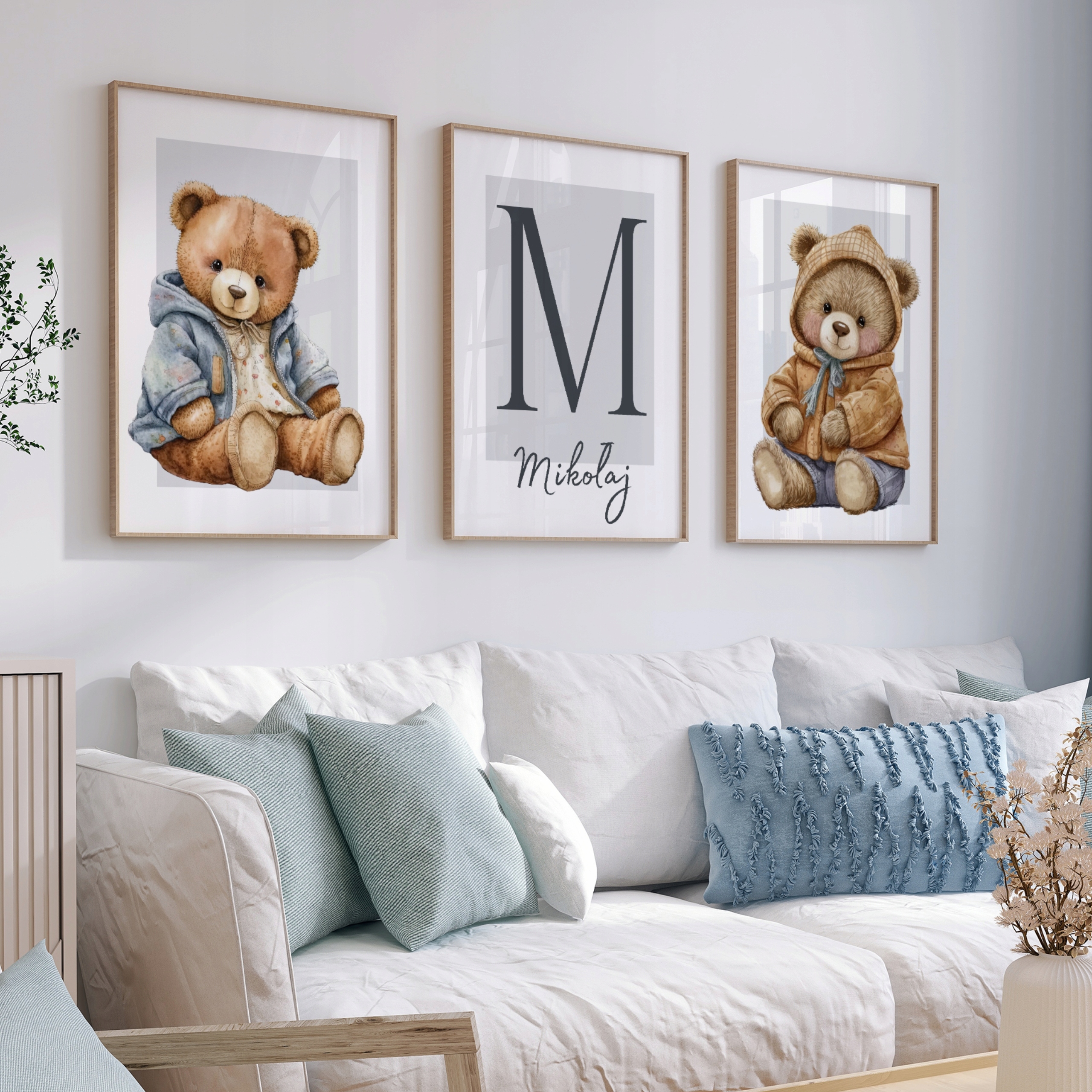 НАБІР НАСТІННИХ КАРТИН З 3 ПОСТЕРІВ ВЕДМЕДИК ДЛЯ ДИТЯЧОЇ КІМНАТИ ХЛОПЧИКА