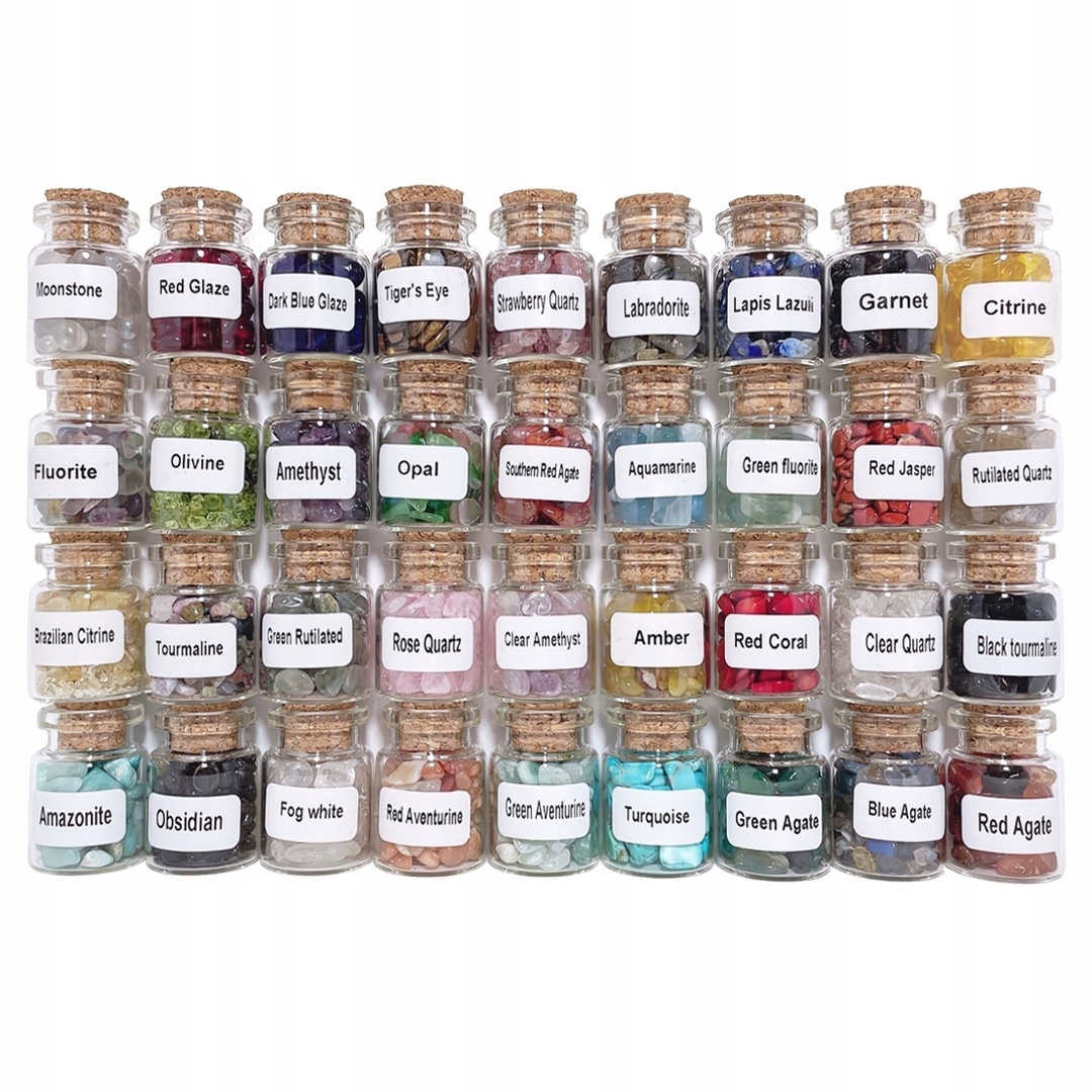 - Цей набір каменів містить 36 пляшок різних природних мінеральних кришталевих каменів.
