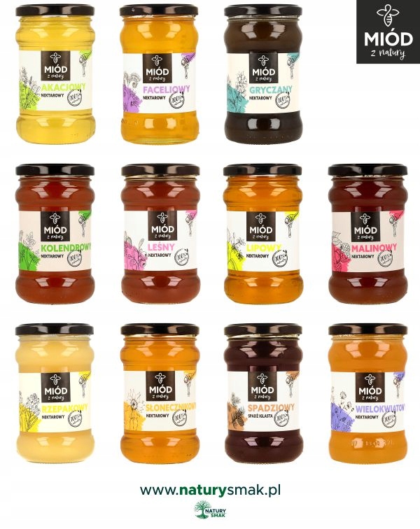У цьому наборі ми пропонуємо 4 натуральних свіжих меду торгової марки "Miód z Natury":