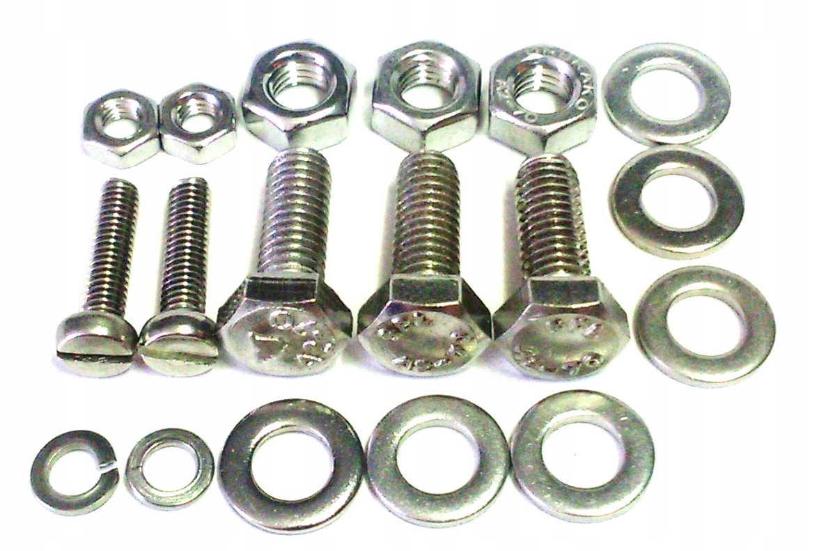 Набір складається з елементів з хромонікелевої нержавіючої сталі, виготовлених у класі A2 70. У набір входять гвинти, гвинти, гайки та шайби. розділені на 17 окремо упакованих груп, що дозволяє без проблем збирати окремі елементи мотоцикла.