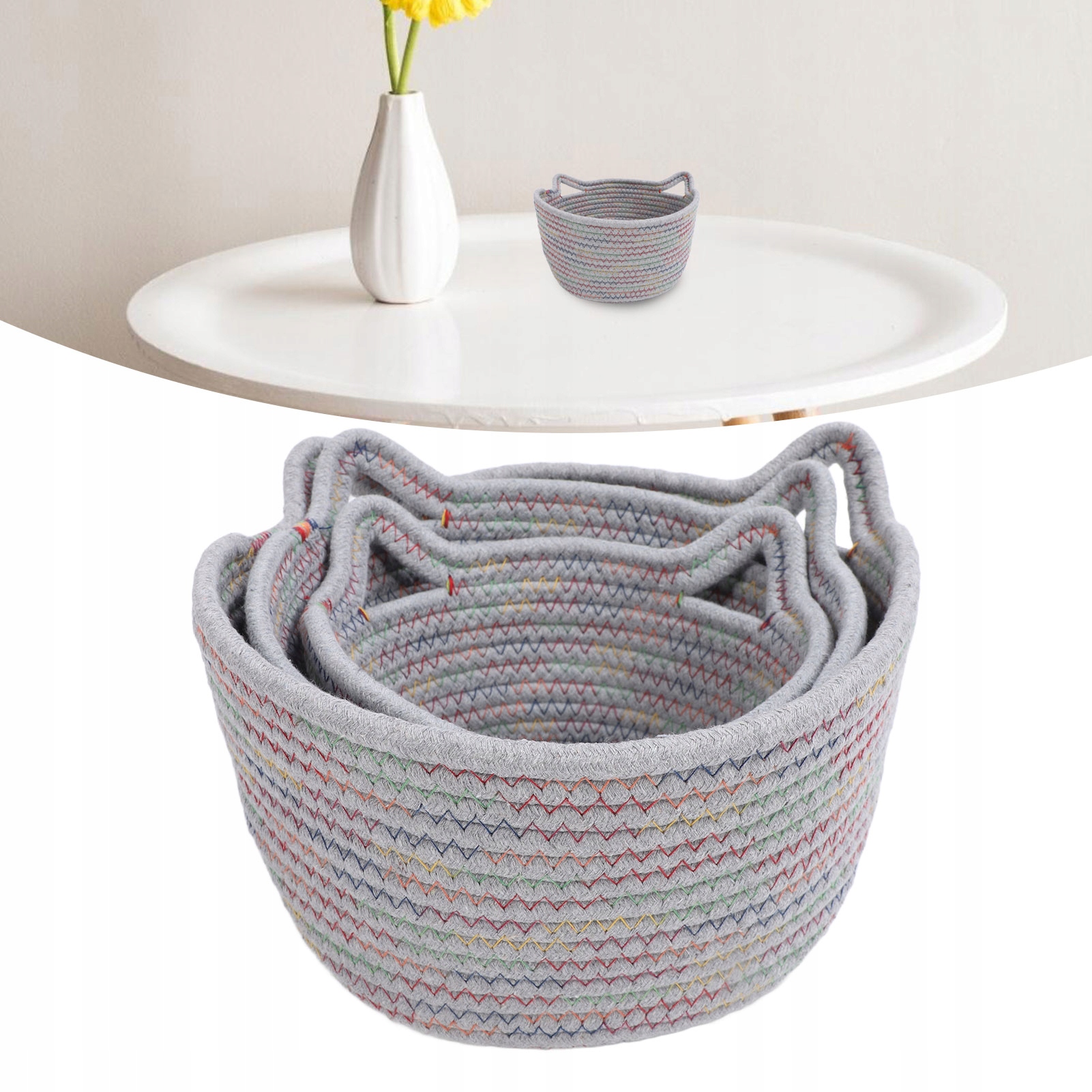 2. МАЛИЙ КОШИК З КОШАЧИМИ ВУШКАМИ: цей милий кошик є ідеальною прикрасою для ванної кімнати, спальні, вітальні, кухні, їдальні, офісу та дитячої кімнати. Ідеально підходить для зберігання дрібних предметів, таких як ключі, гаманці, пульти дистанційного керування, а також засобів для ванни, рушників, сорочок, ковдр, іграшок, закусок, фруктів, сухих квітів, офісного приладдя, косметики тощо. Ви навіть можете додати подушку, щоб перетворити його на ліжко для ваших маленьких котів і собак!