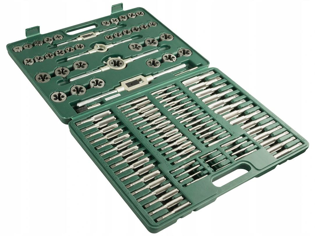 Набір 110 елементів, призначених для різання зовнішніх та внутрішніх ниток. Металеві інструменти будуть дуже міцними. За допомогою представленого набору ви можете вирізати нитки легким і точним способом. Комплект включає 35 круглих ніш, 35 нитків, 35 середніх ниток, 2 глечики (форма T), 2 ручки для нічків та валізу інструментів. Все добре організовано, адже порядок завжди дозволяє знайти те, що ви шукаєте.