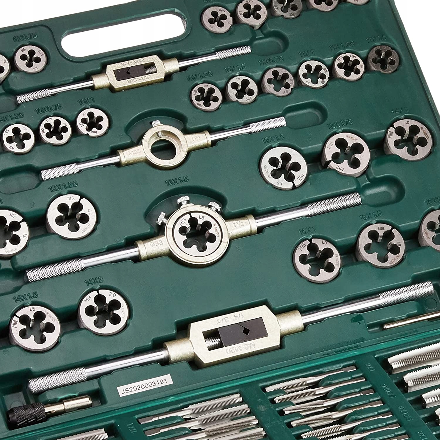 Набір 110 елементів, призначених для різання зовнішніх та внутрішніх ниток. Металеві інструменти будуть дуже міцними. За допомогою представленого набору ви можете вирізати нитки легким і точним способом. Комплект включає 35 круглих ніш, 35 нитків, 35 середніх ниток, 2 глечики (форма T), 2 ручки для нічків та валізу інструментів. Все добре організовано, адже порядок завжди дозволяє знайти те, що ви шукаєте.