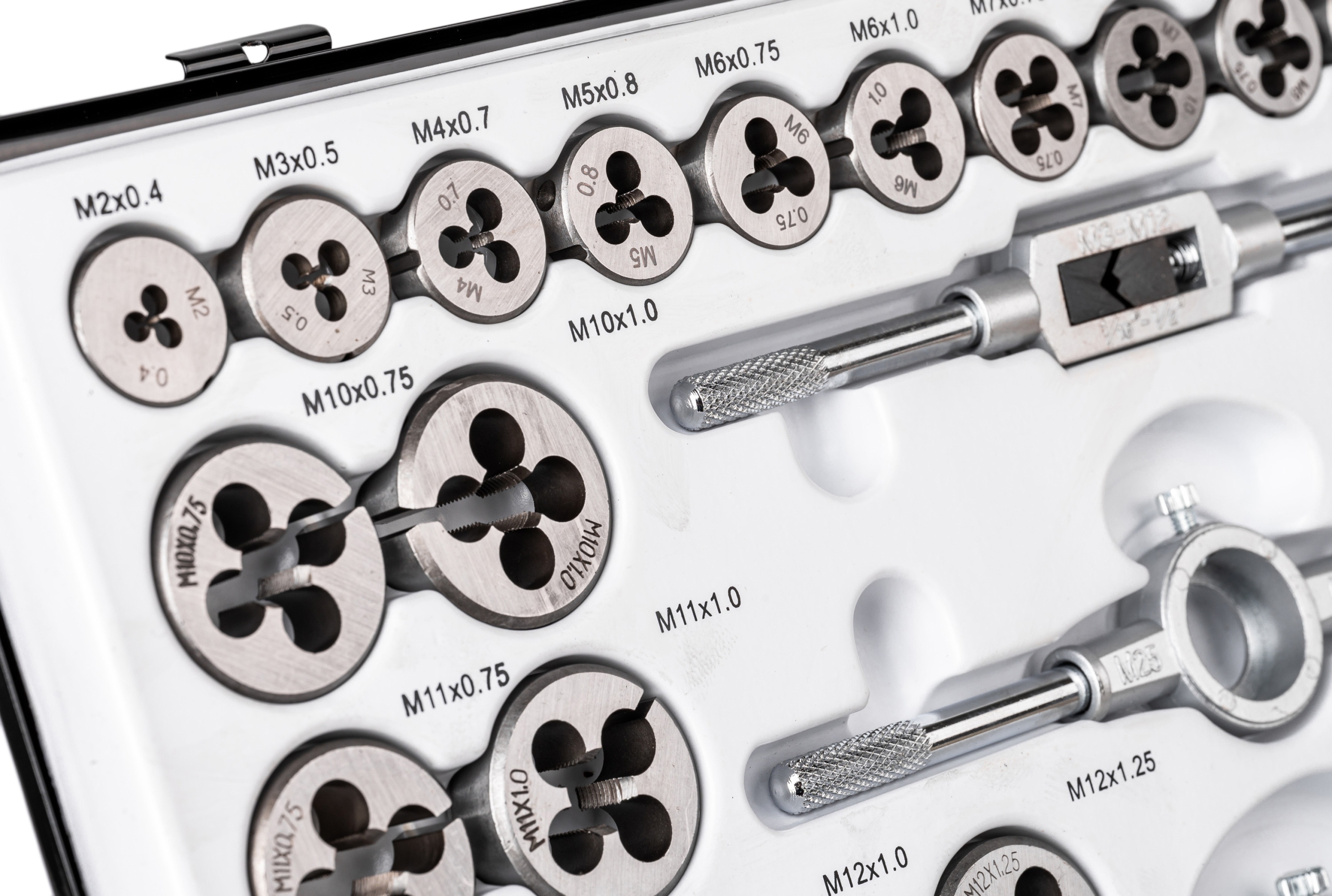 - 35 x 2 pc. Нитки: m2x0.4 мм; M3x0,5 мм; M4x0,7 мм; M5X0,8 мм; M6x0.75 мм; M6x1.0mm; M7X0.75 мм; M7X1.0мм; M8x0.75 мм; M8x1.0mm; M8x1.25мм; M9x0.75 мм; M9x1.0mm; M9x1.25 мм; M10x0.75мм; M10x1.0мм; M10x1.25мм; M10x1.5 мм; M11X0.75 мм; M11x1.0mm; M11x1.25мм; M11x1.5мм; M12x0,75 мм; M12x1.0mm; M12x1.25 мм; M12x1,5 мм; M12x1.75 мм; M14x1.0mm; M14x1.25мм; M14x1,5 мм; M14x2.0mm; M16x1.0mm; M16x1,5 мм; M16x2.0mm; M18x1,5 мм;