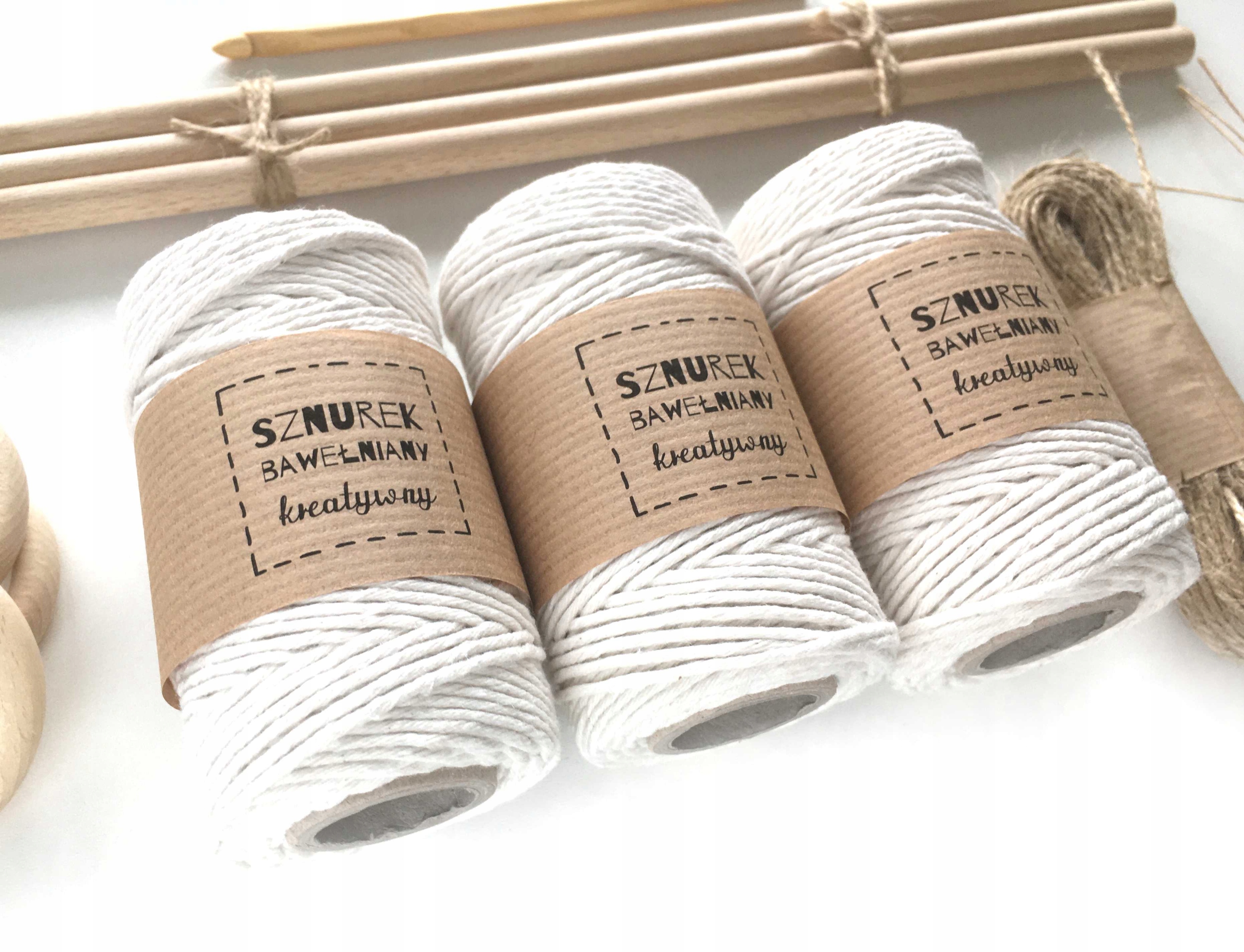 - 3 рулони бавовняних ниток макраме НАТУРАЛЬНОГО КОЛЬОРУ (як у фото) - товщина приблизно 2 мм - довжина рулонуприбл. 40 метрів (загалом приблизно 120 метрів)