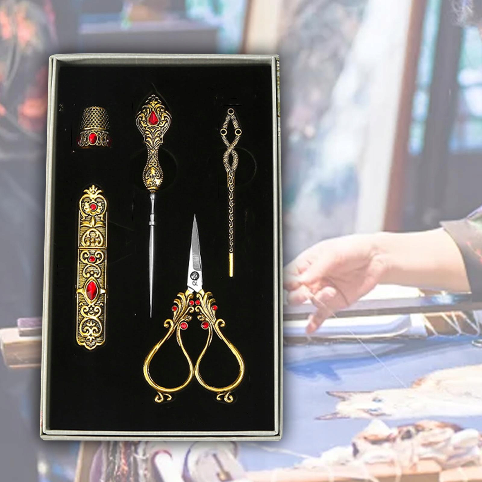 [European Vintage]: ножиці в цьому наборі розроблені в європейському вінтажному стилі, що додає елегантності вашим інструментам для шиття. .