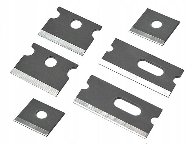 Пропонований набір включає 2 набори по 3 ножа для різання та зняття ізоляції, що використовуються в багатофункціональні штепсельні обтискачі RJ від HANLONG. Ножі виготовлені із загартованої вуглецевої сталі товщиною 0,5 мм. Розміри та кількість в пропонованому наборі наведені на фото нижче.