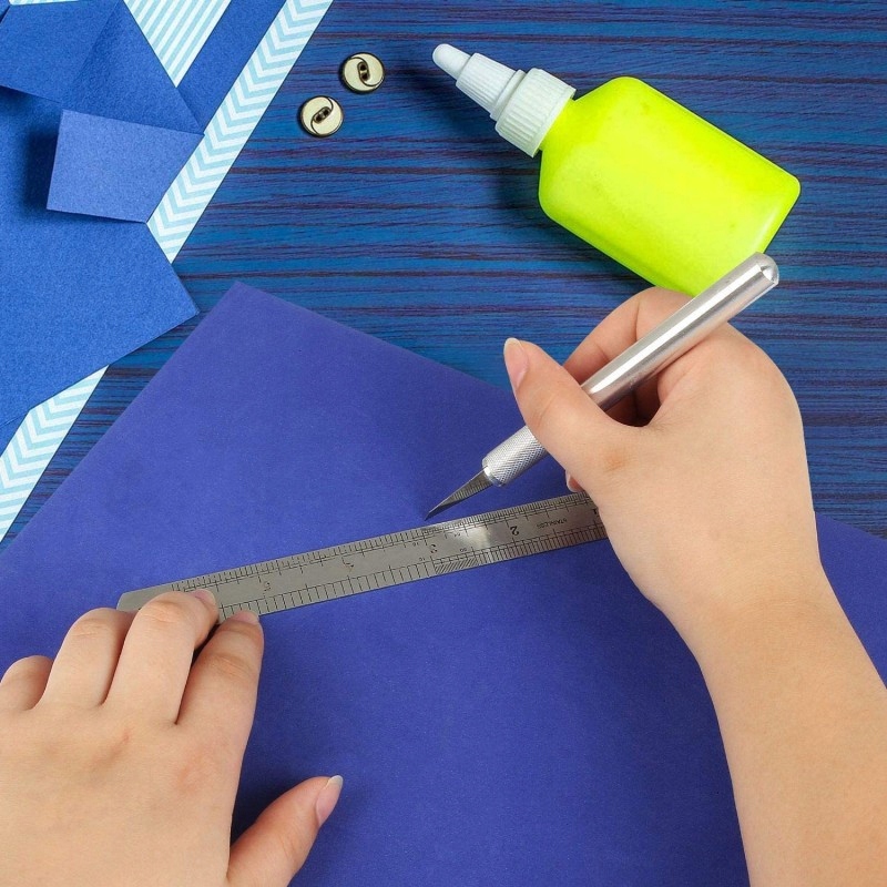 Набір містить ножі, які ідеально підходять для різання дерева, картону, пластику, фольги, воску та тканин.