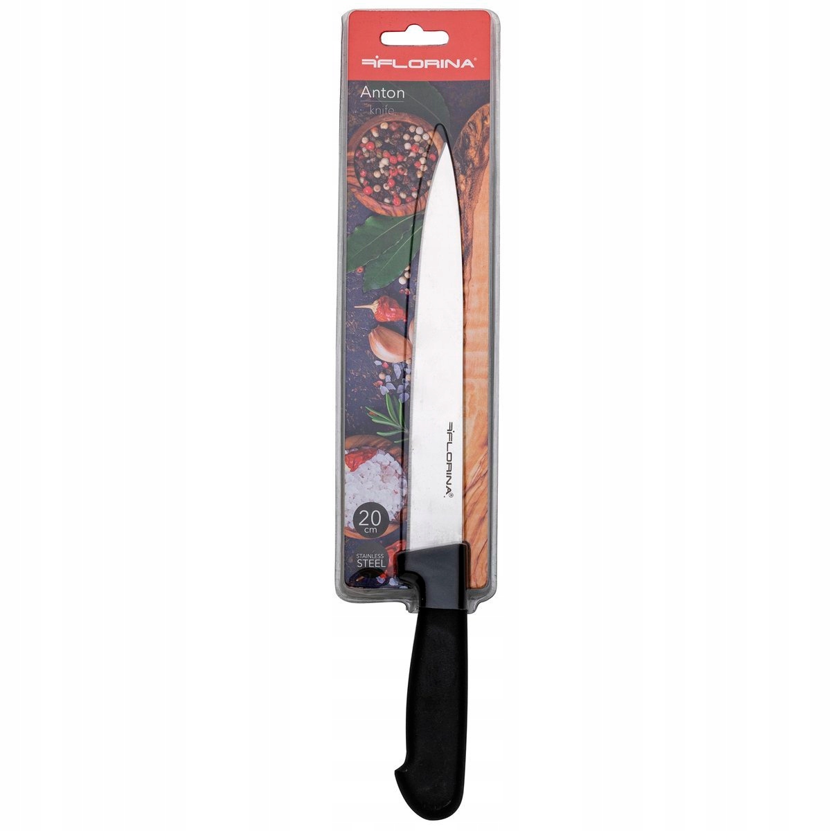 Набір Антон складається з: ніж для холодного м'яса з вузьким і довгим лезом, ніж для хліба з довгим і зубчастим лезом, кухарський ніж з широким і гладким лезом, ніж для овочів з коротким лезом і універсальний ніж.