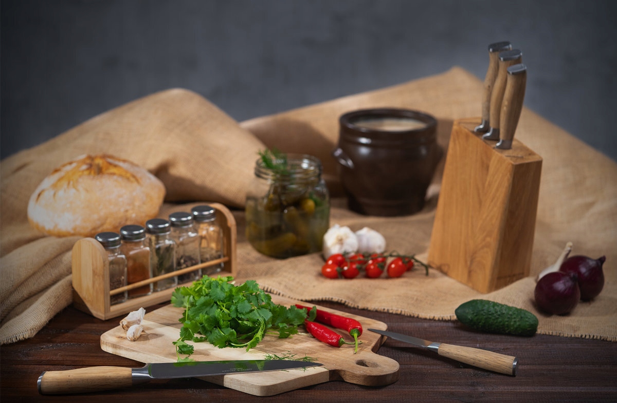 - Універсальний кухонний ніж 5" - вузьке і коротке лезо, яке буде працювати, серед інших, коли прикраси або вирізання,
