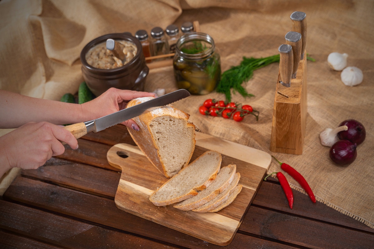 - хлібне нож 8 " - Завдяки прорізанню зубів він добре справляється з будь -яким типом хліба
