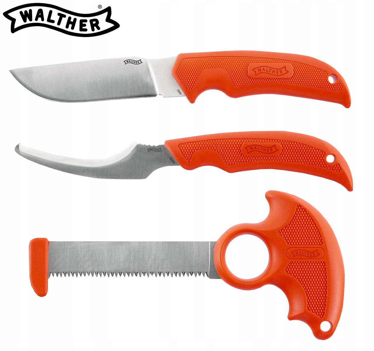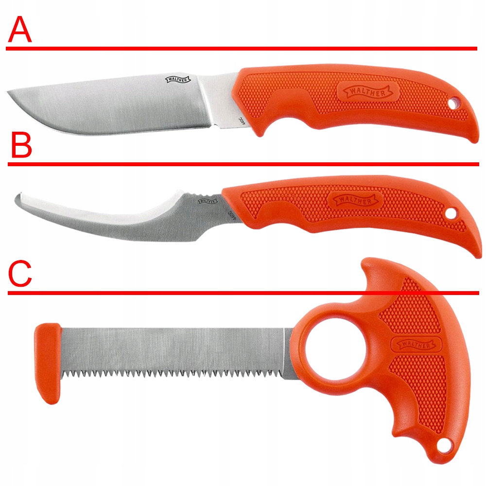 Набір ножа Hunter Walther 2 - це професійний набір інструментів для полювання, який включає універсальний шкірний ніж, компактний патристичний ніж та ергономічна кісткова пила. Набір призначений для зв'язування тварин у польових умовах, пропонуючи легку конструкцію, ергономічну структуру та нейлонову оболонку, яка полегшує зручний транспорт та швидкий доступ до інструментів. Завдяки використанню міцних сталі та яскравих ручок 440C, інструменти легко знайти та високостійкі до корозії, що гарантує їх тривалий функціональність.