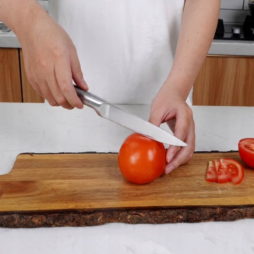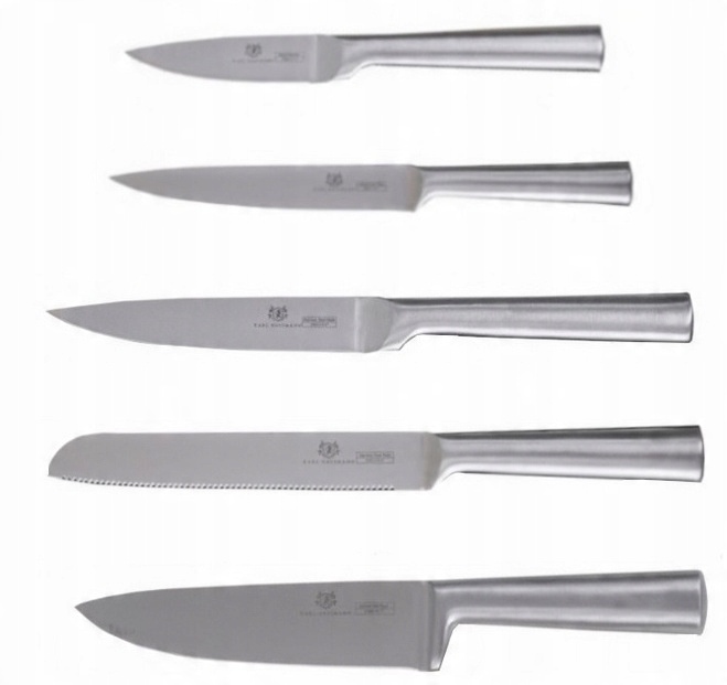 Універсальний набір з п'яти ножів лінійки CARLO має індустріальний дизайн, який стане ідеальною прикрасою кухонної стільниці на сучасній кухні. Незалежно від призначення, кожен ніж стане незамінним помічником, якого гідно оцінять любителі кулінарних справ. Високоякісна нержавіюча сталь забезпечить тривалу точність і довговічність.