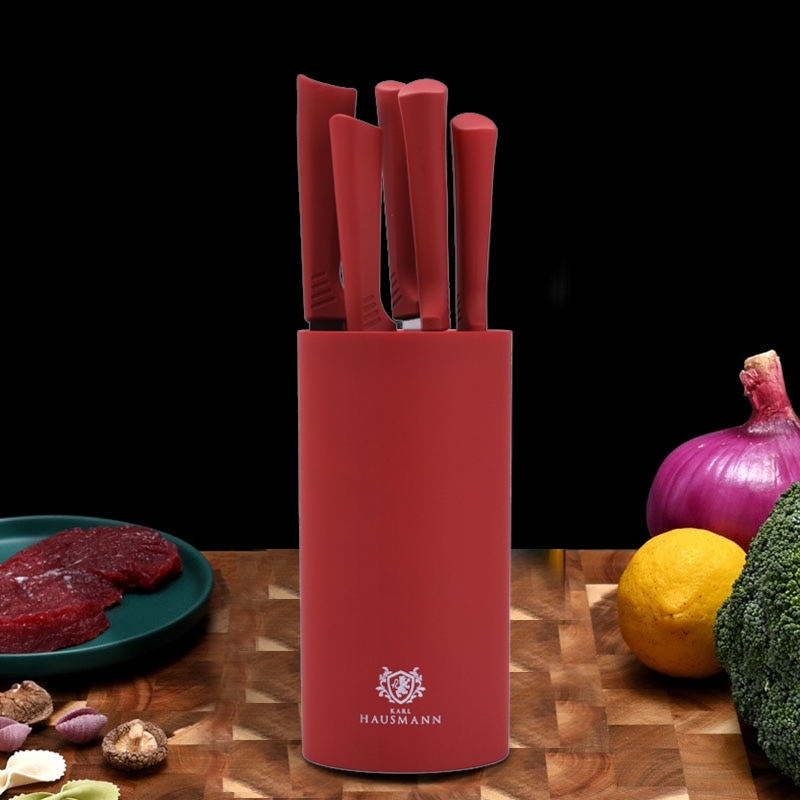 НАБІР НОЖІВ КУХОННИХ 6 ЕЛЕМЕНТІВ В БЛОЧНІЙ ТРУБІ ЧЕРВОНІ