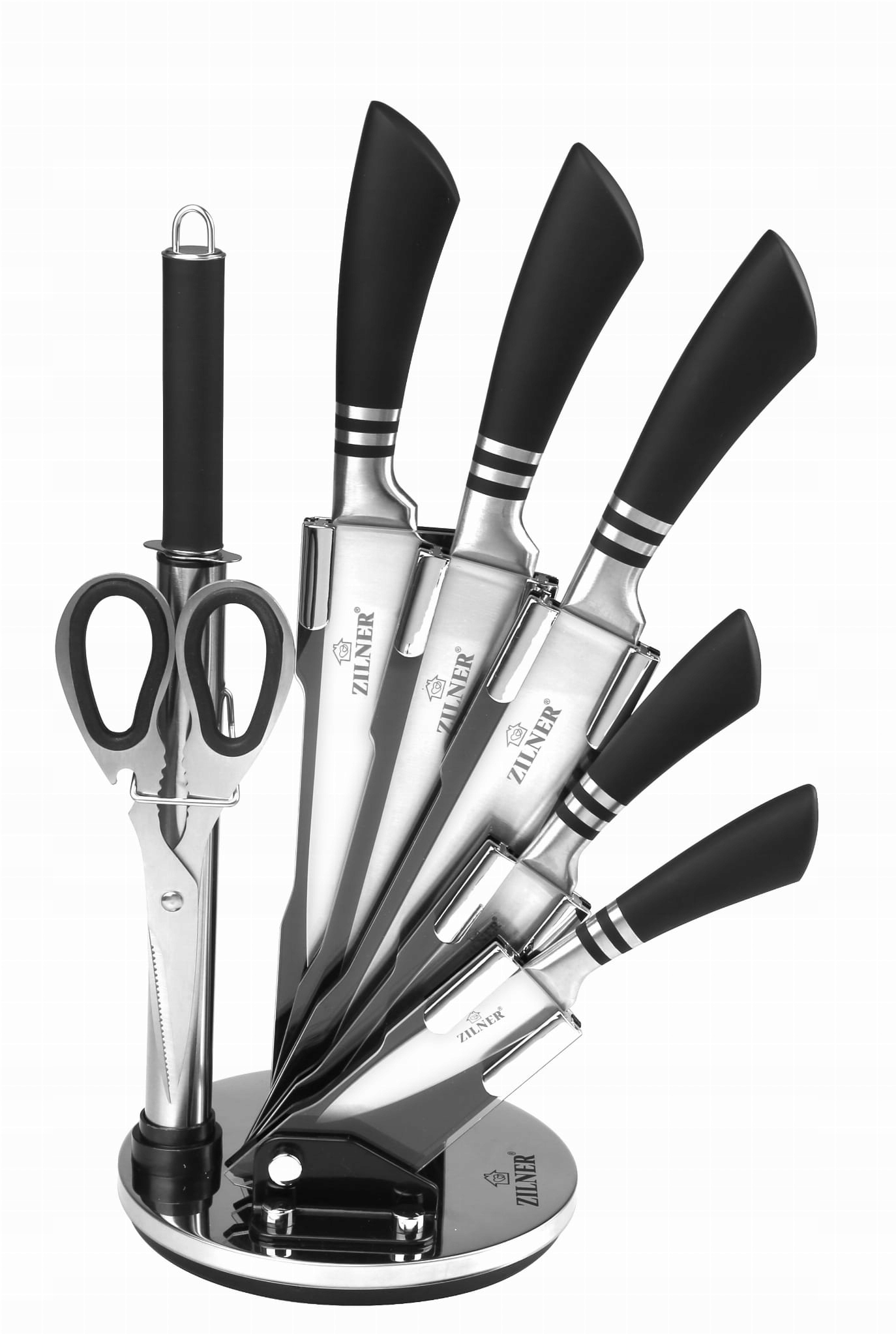 Набір ножів із нержавіючої сталі з 8 предметів на обертовій підставці від ZILNER. ЕДЕНБЕРГ. ЕЛІТЕХОФ