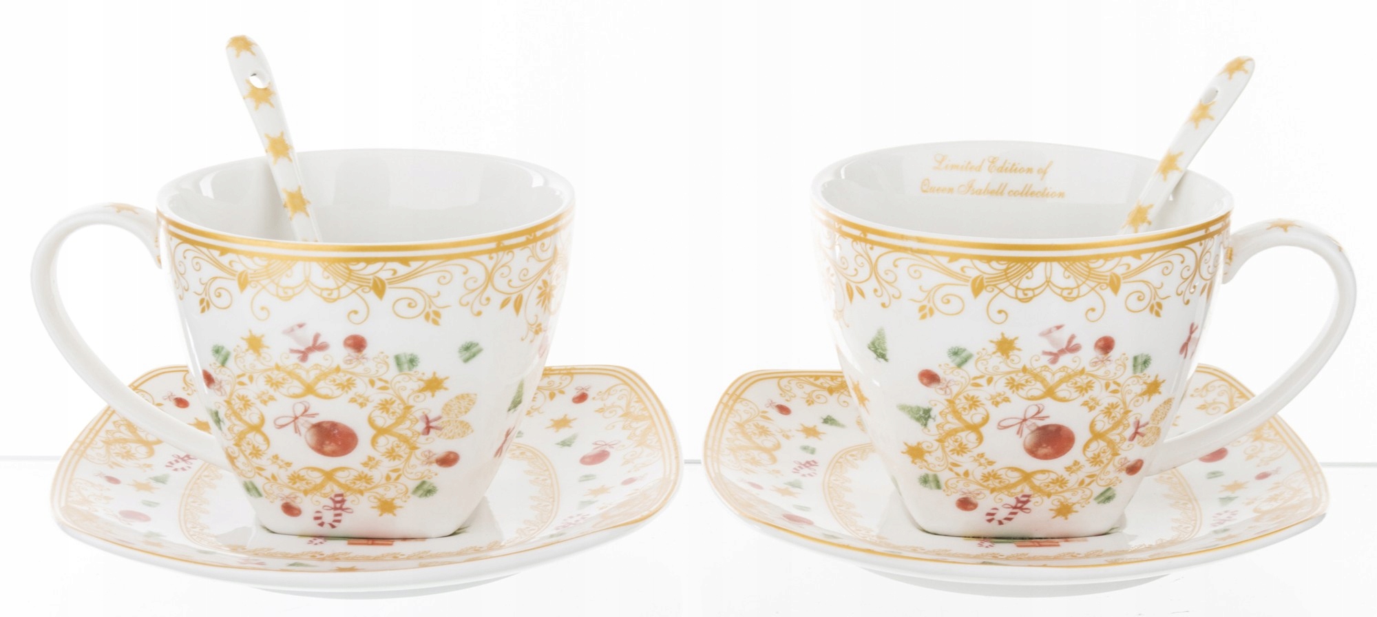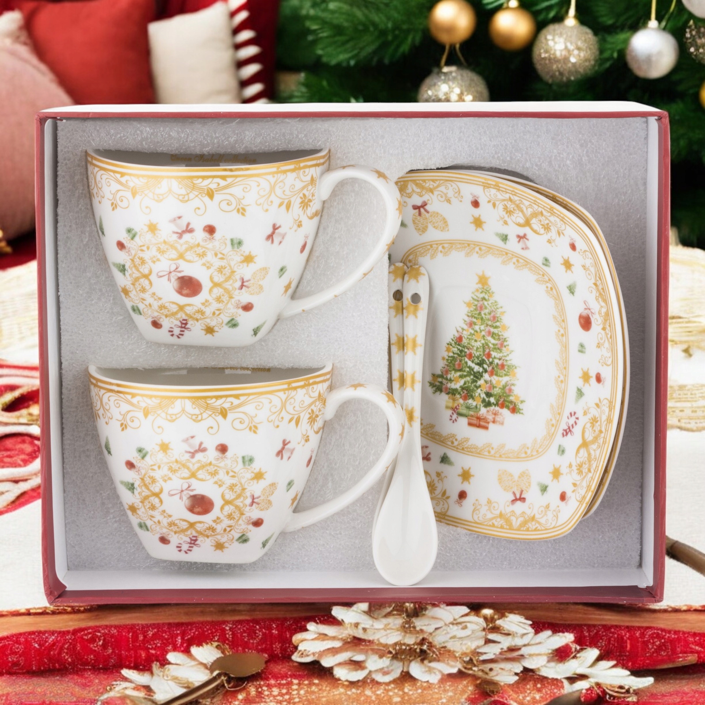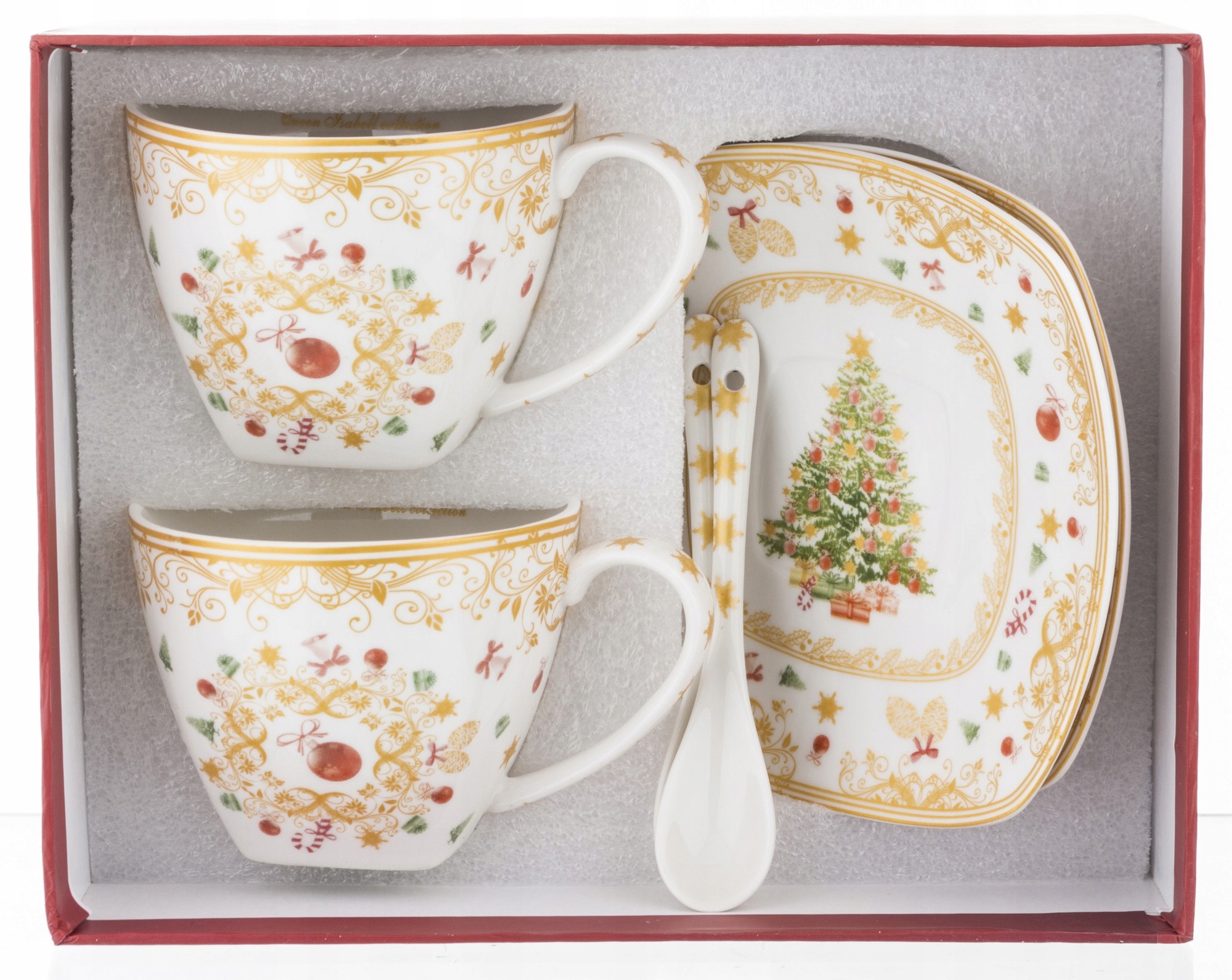 Набір з двох чашок з блюдцями та ложками з різдвяним мотивом у коробці