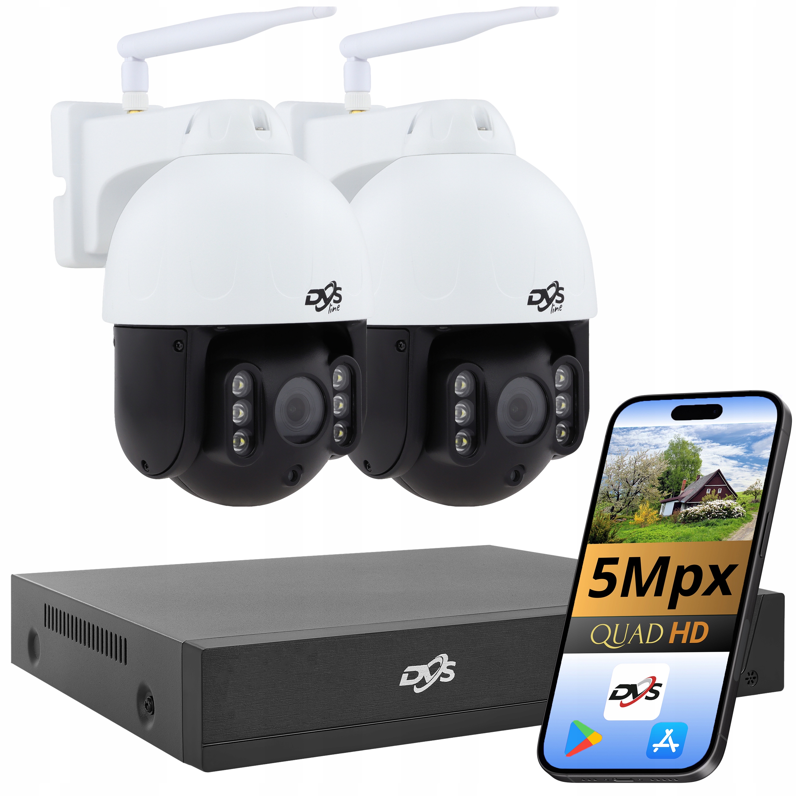 створений для людей, які шукають високоякісну продукцію за доступною ціною. Набір включає суцільні бездротові камери з польської марки DVS . Ми розробили набір прослуховування потреб користувачів. Завдяки компактній конструкції та довговічним елементам вони забезпечують легкість та комфорт використання. Камери ідеально підходять як для внутрішніх, так і для зовнішніх застосувань.