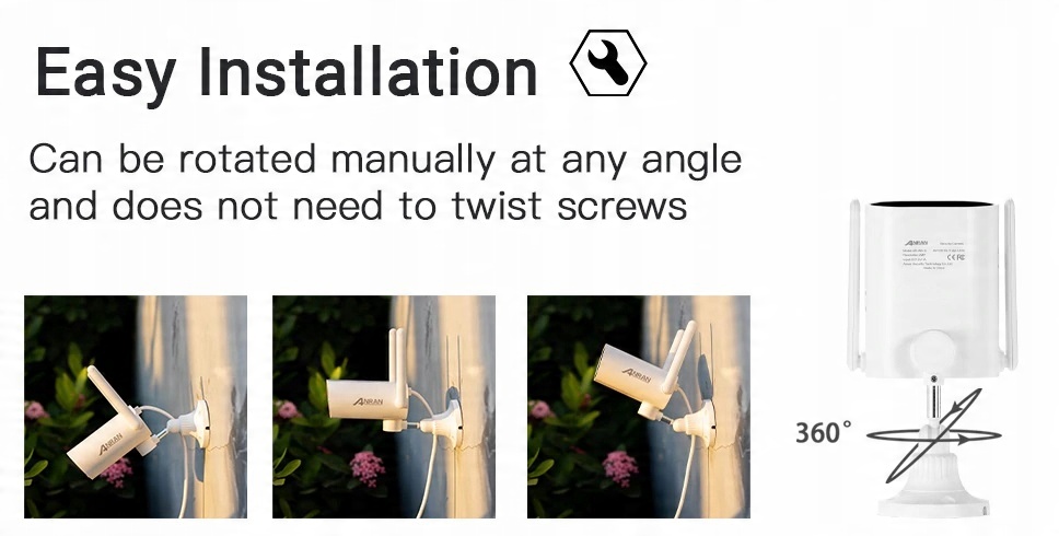- Камера має вбудований двигун і підтримує обертання на 200 °