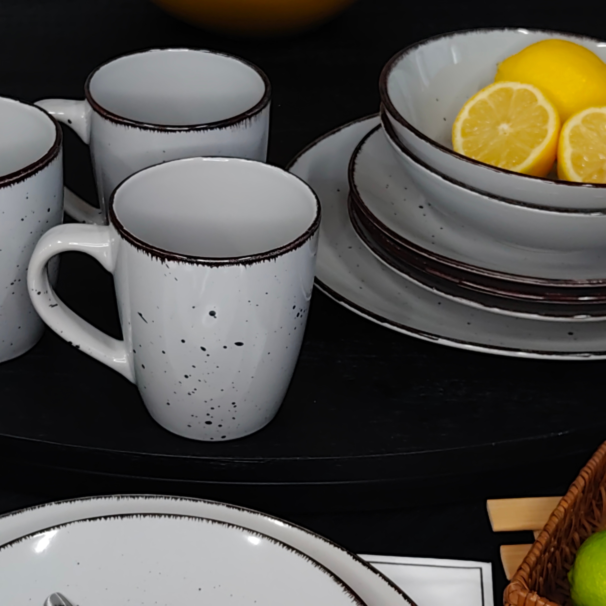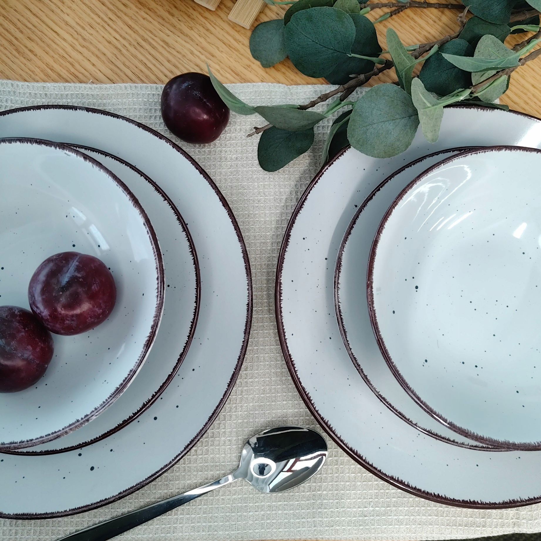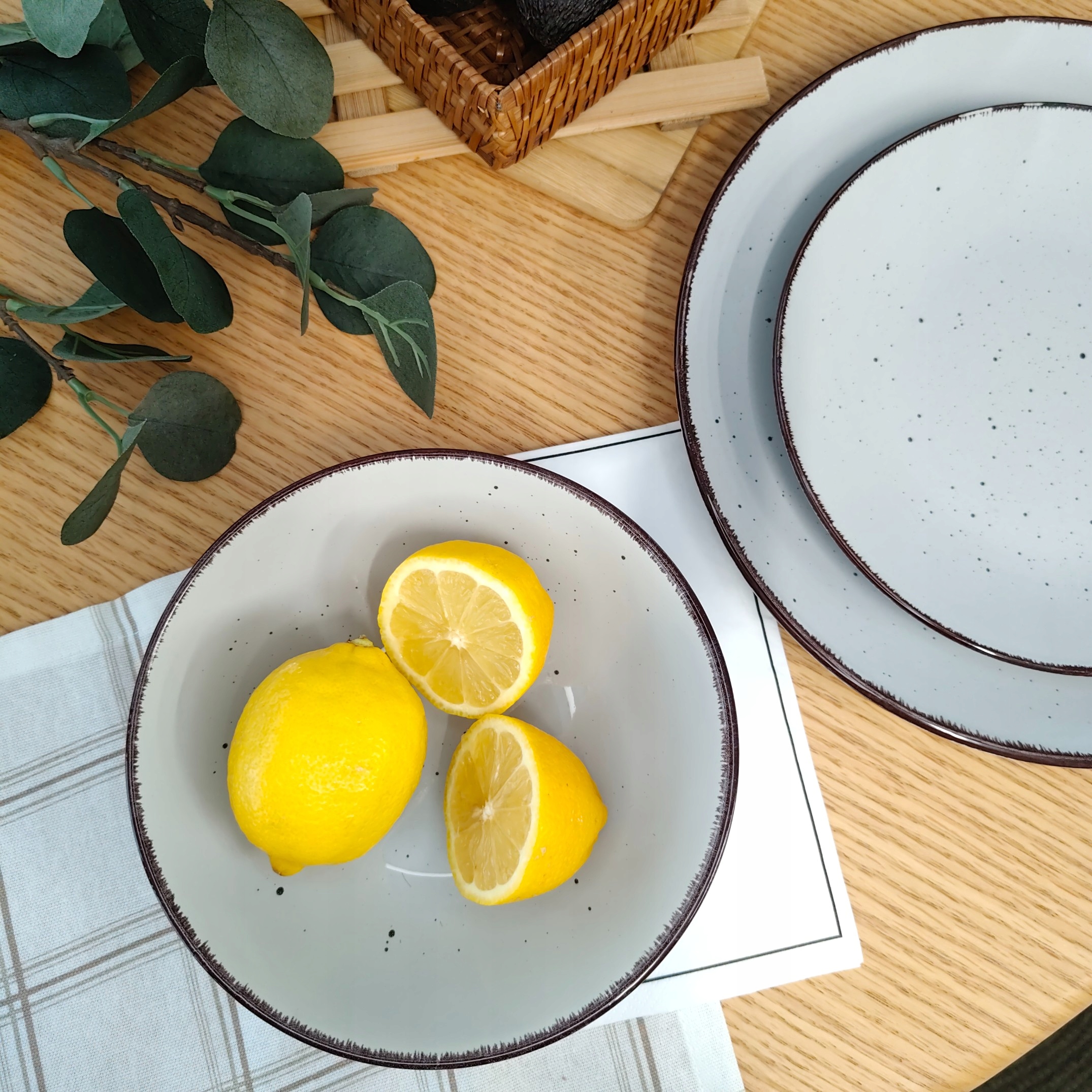 Посуд Livello вражає своїм простим, але вишуканим дизайном. Делікатні вкраплення і злегка потертий край темного відтінку надають йому унікальний, позачасовий характер, який ідеально вписується в будь-який стиль інтер'єру - від сільського до модерну.